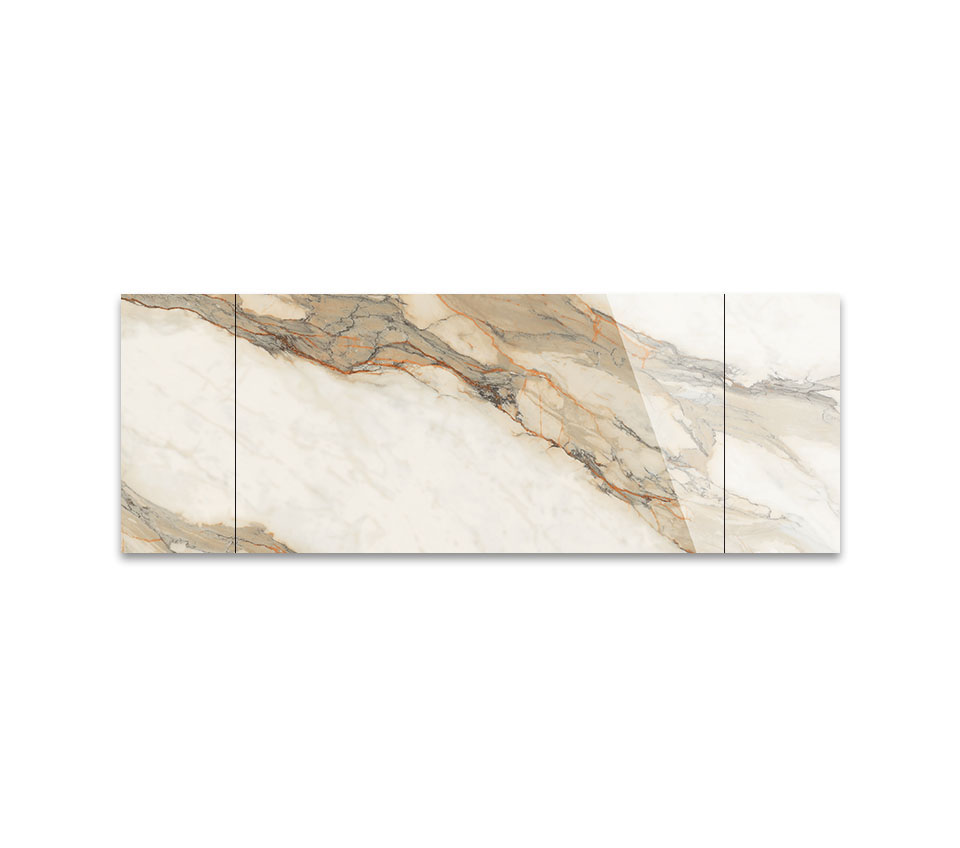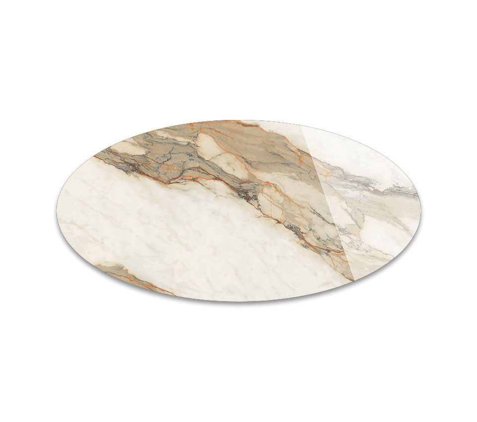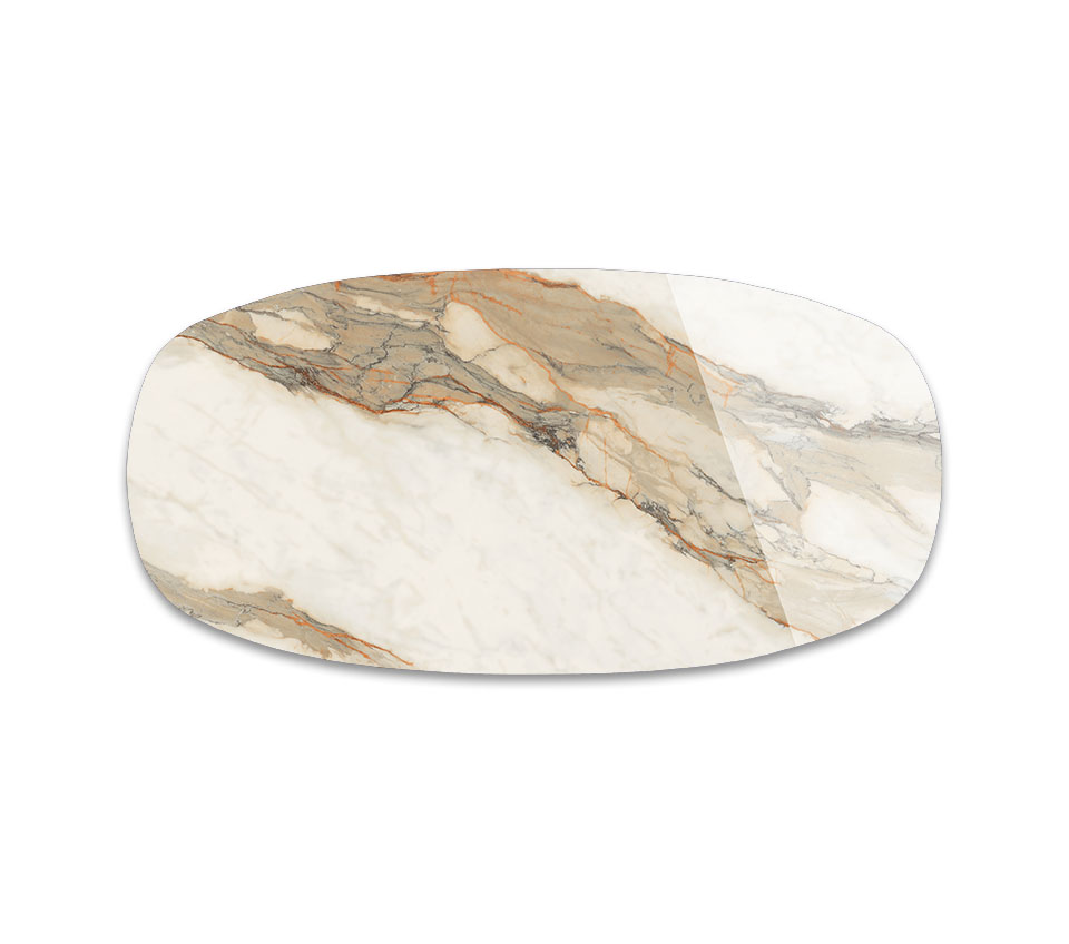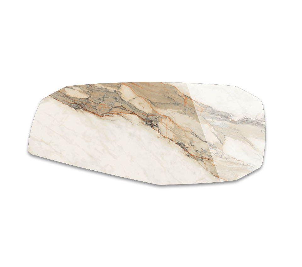 Michelangelo's favourite Italian marble, Borghini Calacatta, is valued all over the world for its richly-coloured veins that stand out against a delicate ivory-white background. Our Borghini Calacatta marble-effect ceramic, has two types of overlapping veins, which run along the length of the slab. The main one is wide and soft, with shades ranging from intense ochre to smoky grey. Subtle ripples on the surface create a rich texture with bright colours, including shades of bright orange and warm grey. This finish is available in the Glossy and Matt versions. In a modern living room a Borghini Calacatta designer table achieves a fascinating and luxurious effect, coupled with the natural elegance of marble. Our designer ceramic furniture range also includes fine cabinets, coffee tables and spectacular ceramic console tables, as well as desks with a ceramic top to create exciting home offices.