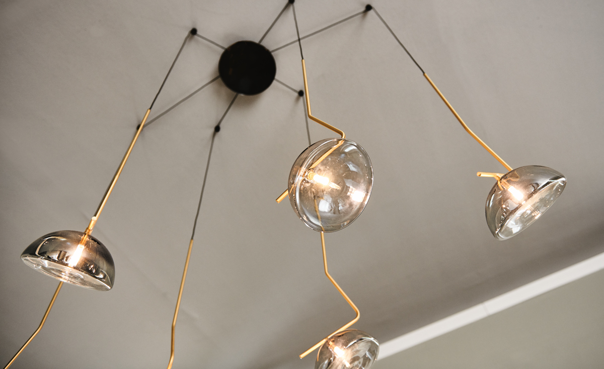 La lámpara de techo Sunset, realizada también como lámpara de sobremesa moderna y minimalista, presenta un encanto delicado y emocionante. La estructura de latón, simple y cautivadora, sostiene una pantalla de media esfera con un toque retro. El cristal fumè permite que la luz sea difusa.