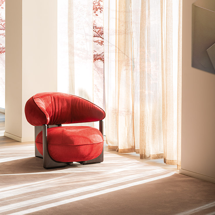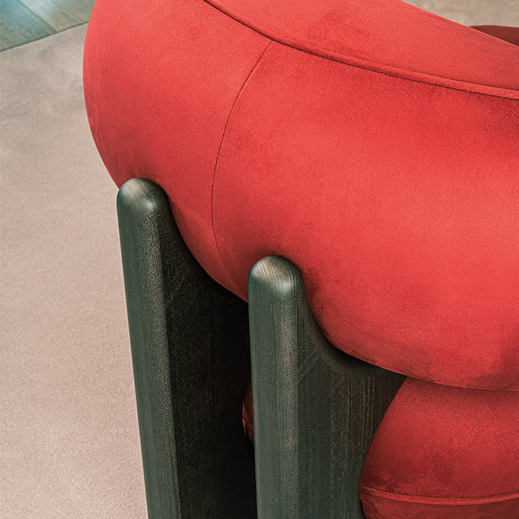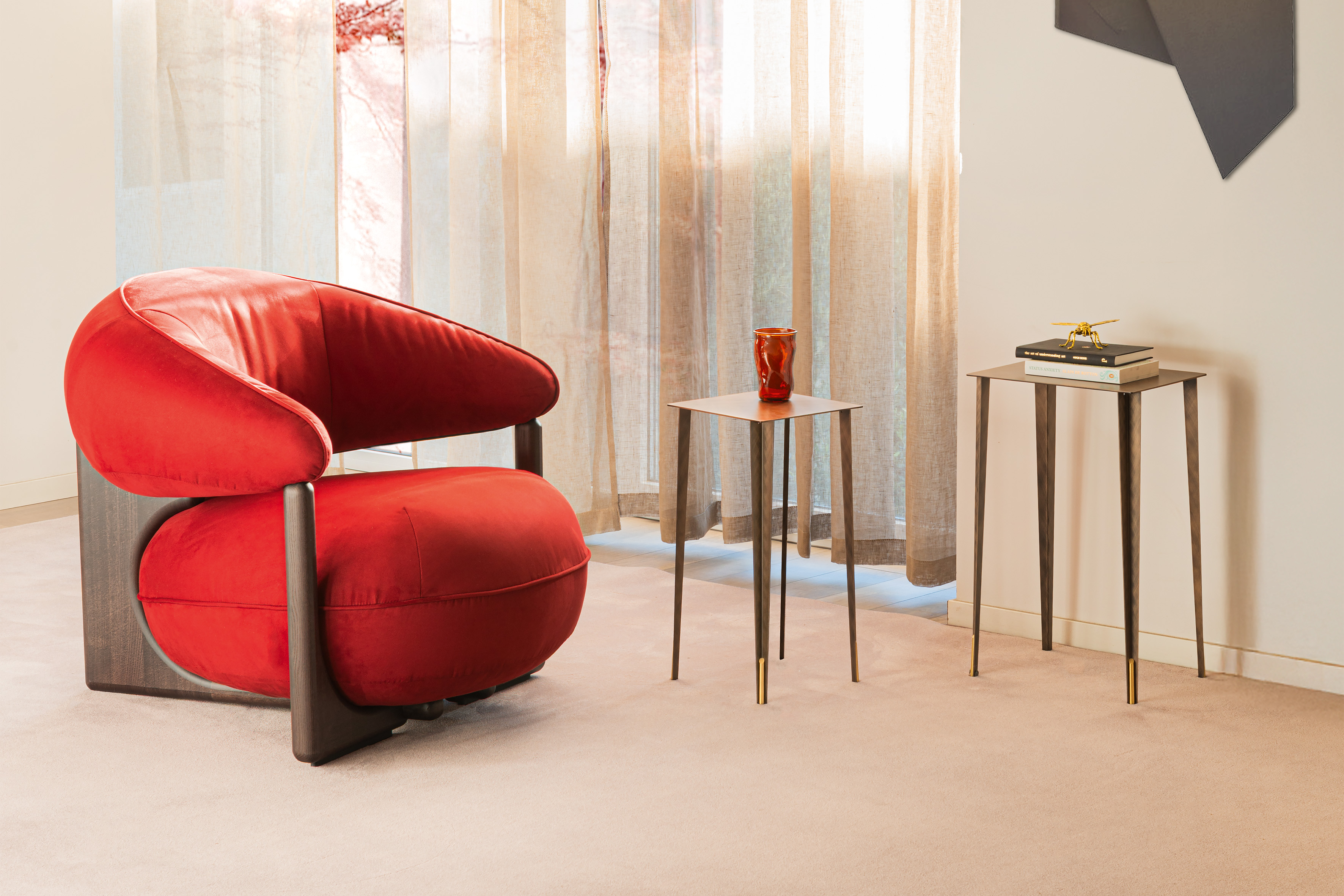 Facile da abbinare, la poltroncina da salotto si accosta con naturalezza ad un divano moderno, oppure può essere interpretata come elemento freestanding in luoghi destinati ad hospitality, quali lounge area e suite.