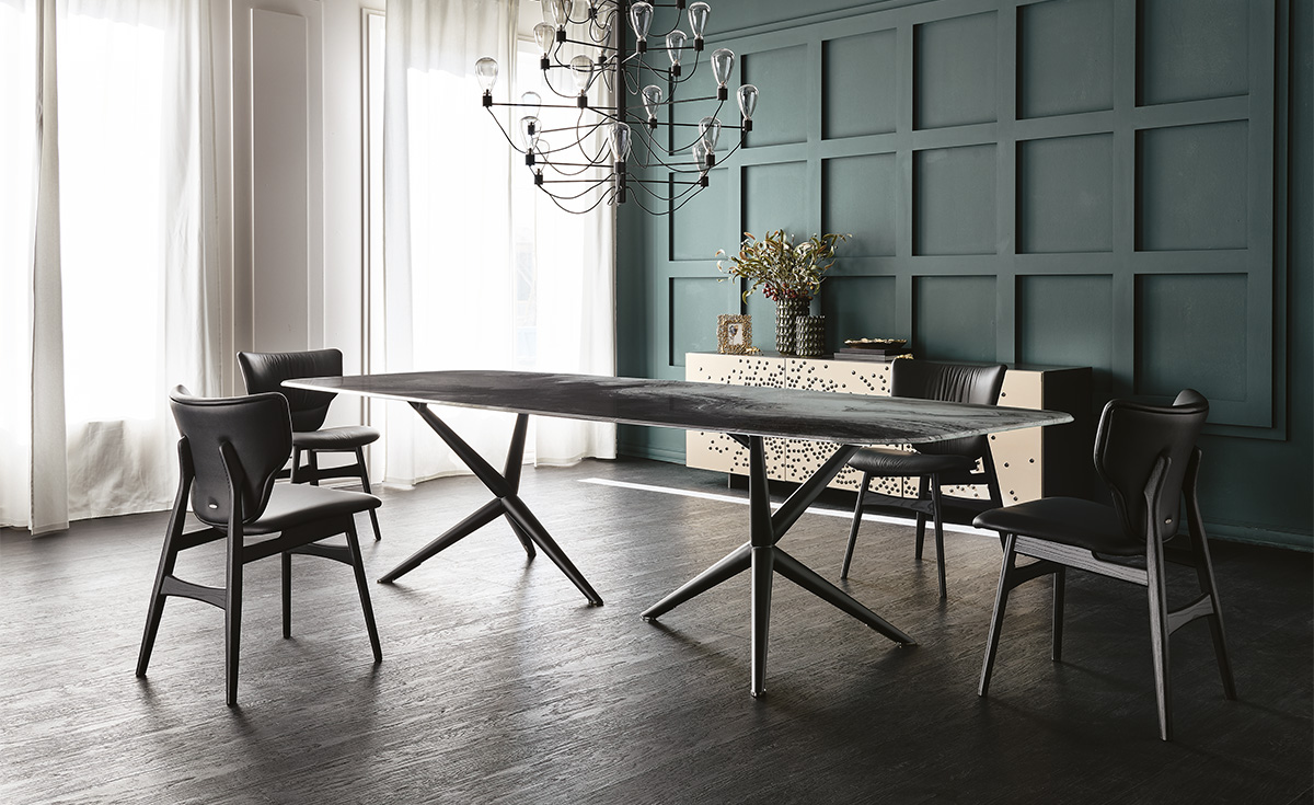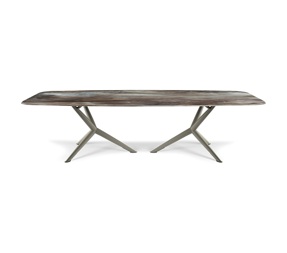 Die Familie moderner Tische Atlantis verleiht dem Esszimmer einen raffinierten und unnachahmlichen Stil. Eine nüchterne Formensprache macht diesen Designtisch zu einem zeitlosen Möbelstück. Der schlanke Stahlfuß trägt die Platte in den erhältlichen edlen Ausführungen. Atlantis Wood ist ein Holztisch, dessen Tischplatten individuell gestaltet werden können: mit unregelmäßigen Kanten für materielleren und natürlicheren Effekt, mit Tonnenplatte mit abgeschrägten Kanten oder mit abgerundetem und lackiertem Unterprofil. Atlantis Keramik hat ein edles Erscheinungsbild und wird in vielen raffinierten Nuancen der Marmi-Keramik hergestellt.Atlantis Crystalart ist ein Glastisch mit einem bezaubernden dekorativen Kunstdruck.