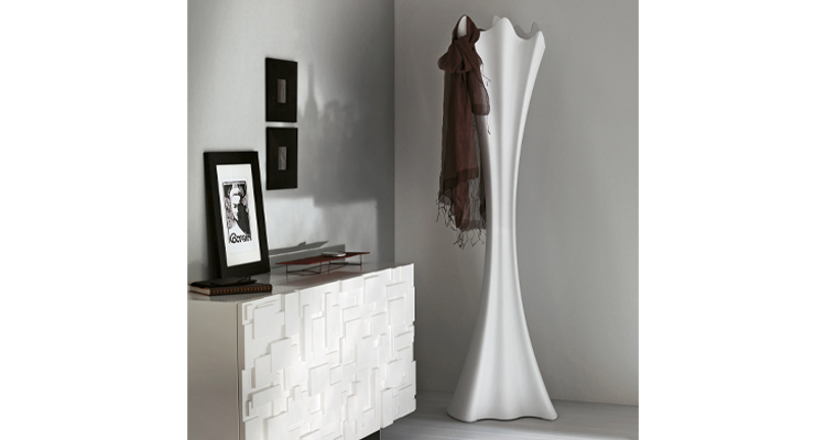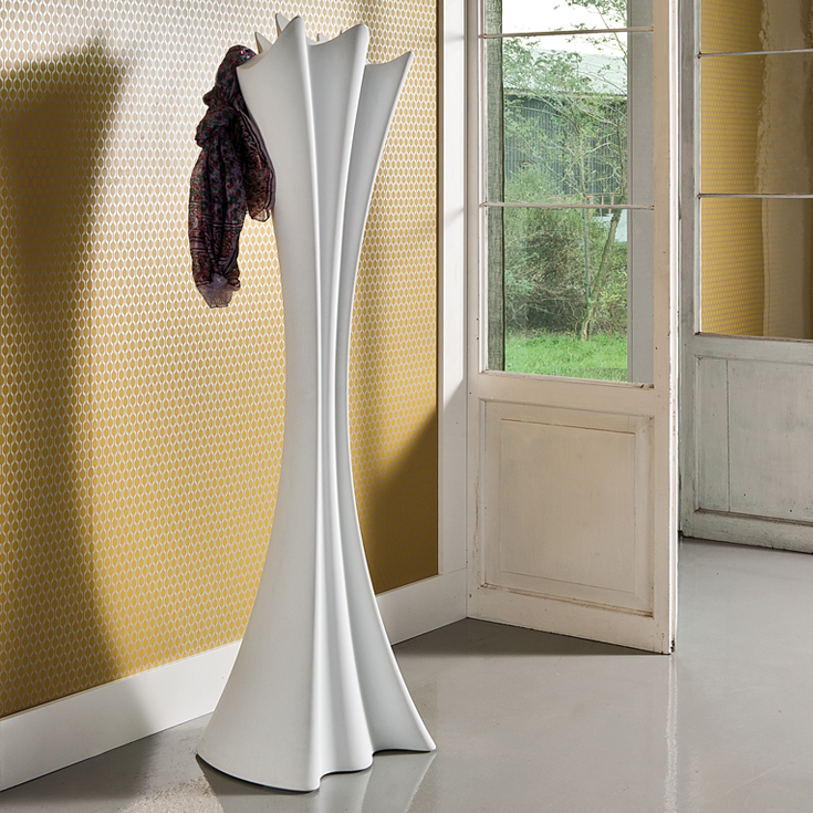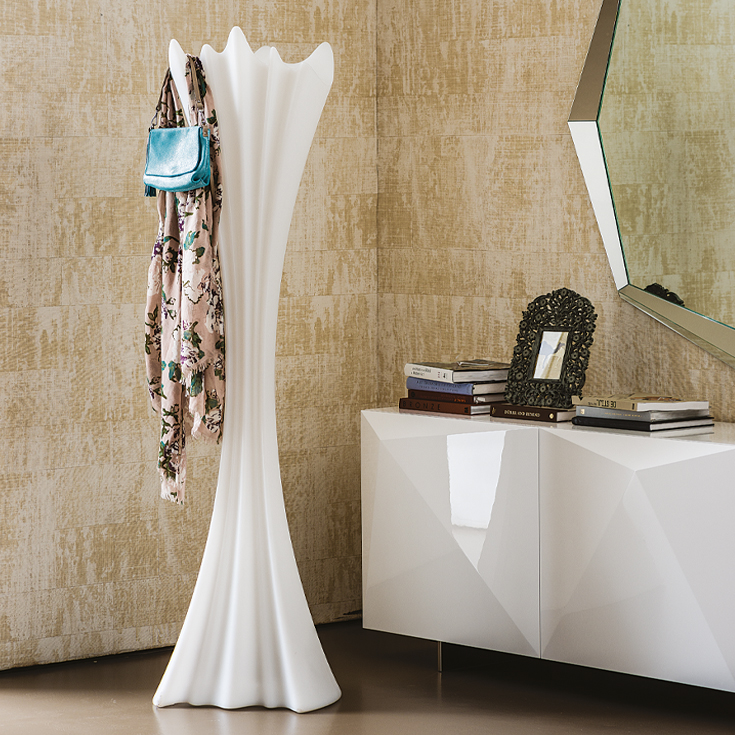 Das Design des modernen Kleiderständers Sipario ist von den Drapierungen eines voluminösen Stoffes inspiriert. Die weiche Form aus weißem Polyethylen schafft es, dem Material eine fließende Bewegung zu geben. Die geschwungenen und anmutigen Oberflächen dieses Designer-Kleiderständers schaffen natürliche und elegante Hell- und Dunkeltöne.Sipario erfüllt perfekt die Bedürfnisse, auf die er ausgerichtet ist: Er ist beidseitig verwendbar und verfügt über 8 Punkte zum Aufhängen der Kleidung.