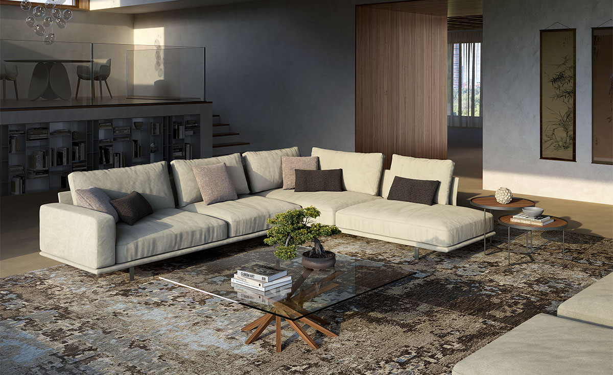 Auf der Suche nach einem klassischen Sofa oder einem perfekten Stück für Ihr modernes Wohnzimmer? Dann ist Harrison genau das Richtige für Sie, ein modulares Sofa, das in bester italienischer Tradition hergestellt wird. Die sanft kantigen Linien erinnern an die Vergangenheit, spiegeln jedoch ein minimalistisches Design wider, das für Ihr zeitgenössisches Interieur entwickelt wurde. Der raffinierte und funktionale Look von Harrison macht es zu einem bequemen und vielseitigen Sofa, das sich sowohl in einer häuslichen Umgebung als auch in eleganten Contract-Bereichen leicht einsetzen lässt. Der Komfort wird durch die hohen RückenKissen und die schwebende Optik des Siztes gegeben, welche in zwei verschiedenen Höhen lieferbar ist. Sie können Ihr Sofa auch mit Leder oder Stoff ausstatten, die in einer breiten Farbpalette erhältlich sind. Dies ist ein modulares Sofa, das sich allen Ihren Bedürfnissen anpasst: Stellen Sie es aus linearen, eckigen oder freistehenden Lösungen wie Fußhockern, Halbinseln und Chaiselongues zusammen und erstellen Sie eine für Sie maßgeschneiderte Konfiguration, die sich auch für die Mitte des Raumes eignet.