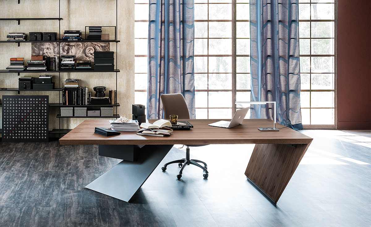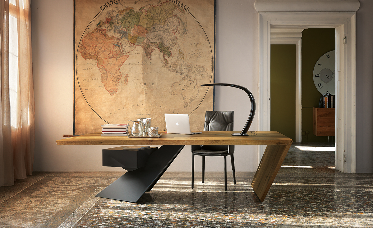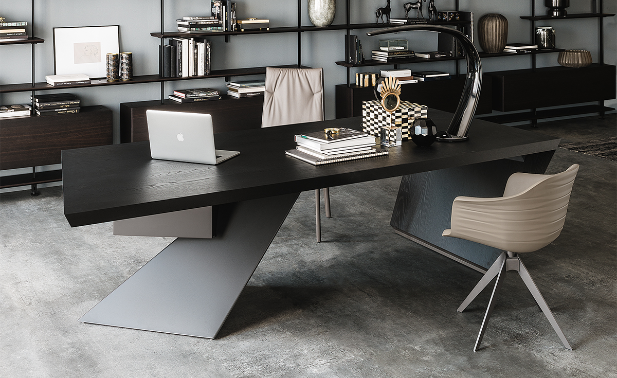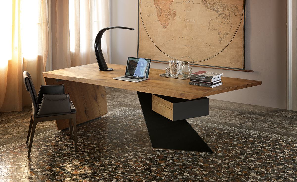 Der Büroschreibtisch Nasdaq ist eine Komposition aus Geometrien und Materialien mit monolithischer Wirkung. Die Holzkommode trotzt der Schwerkraft und ruht auf dem Stahlbein, das mit einer entscheidenden Diagonale in den Raum einschneidet. Der moderne Holzschreibtisch Nasdaq wird mit edlen Materialien und mit den besten Verarbeitungstechniken der italienischen Manufaktur hergestellt.