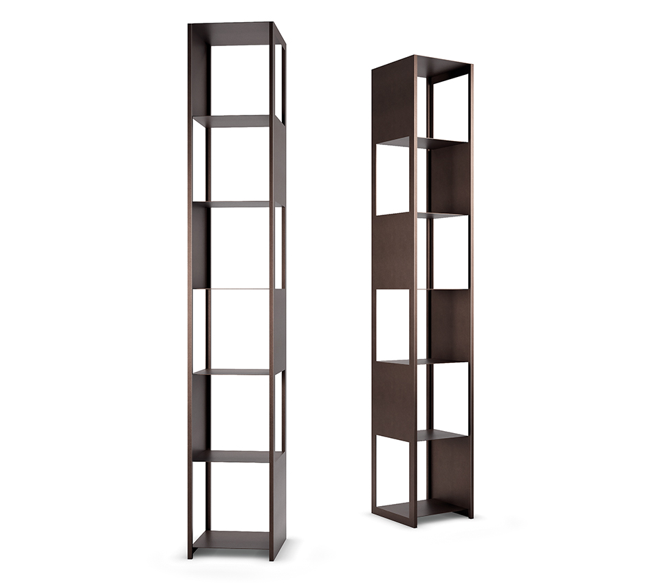Bücherregal aus Stahl lackiert schwarz (OP17), rot (OP89) oder lackiert titan (GFM11), bronze (GFM18) oder pearl (GFM70) gaufriert. Belastbarkeit: jeder Boden kg 7.