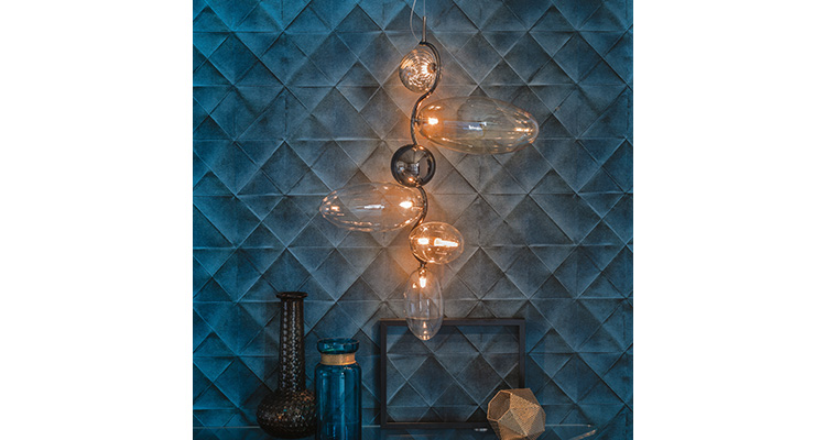 Die Deckenleuchte Topaz besitzt eine tragende Struktur mit charakteristischer Wellenform, an der Kugelformen unterschiedlicher Größe und Farbe aus Borosilikatglas eingehängt sind. Das erzeugte Licht kreiert originelle Reflexionen an den Wänden und breitet sich mit maximaler Intensität aus. Diese moderne Pendelleuchte ist eine dynamische Komposition aus zarten transparenten und farbigen Kristalllampenschirmen, die vertikal hängend den Raum mit Harmonie und Eleganz durchdringen.
