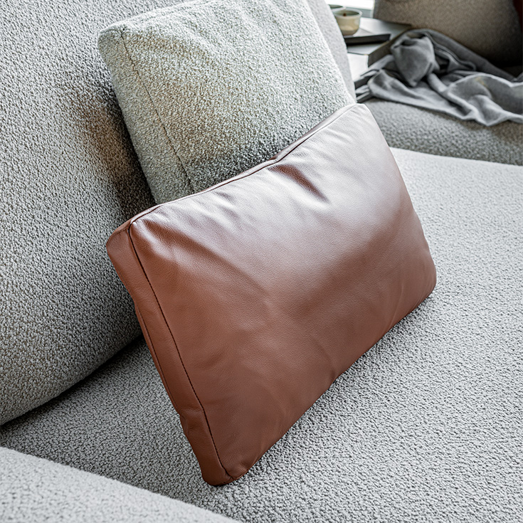 Linger with the softness of Comfy, a cushion padded with a feather blend, available in fabric or leather to suit your needs. This sofa cushion adds a touch of style to a modern living room, without sacrificing the comfort of an ergonomic cushion: the double edging provides greater thickness for more back support. Pamper yourself with a moment of pure relaxation by trying your furniture cushion in rectangular and square versions.