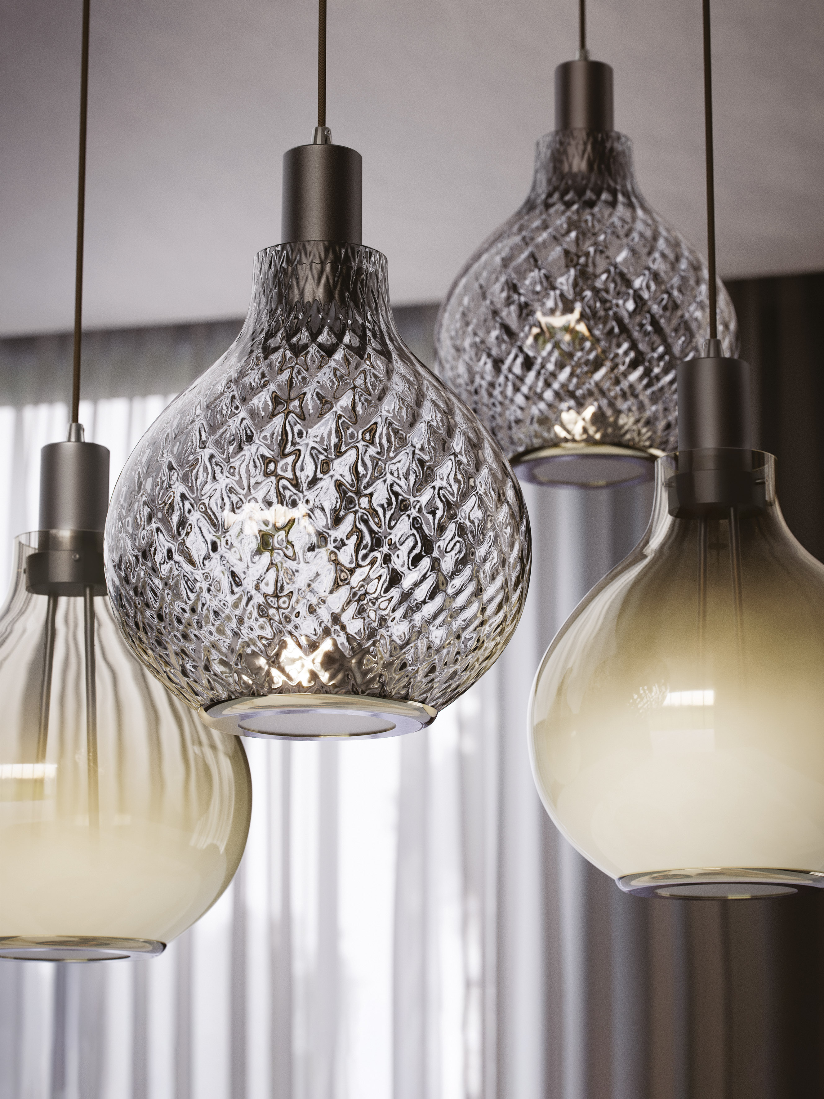 With multi-level compositions combining several of these glass lamps, your living space gains a refined, harmonious accent—one that pairs beautifully with furniture featuring generous, flowing lines.