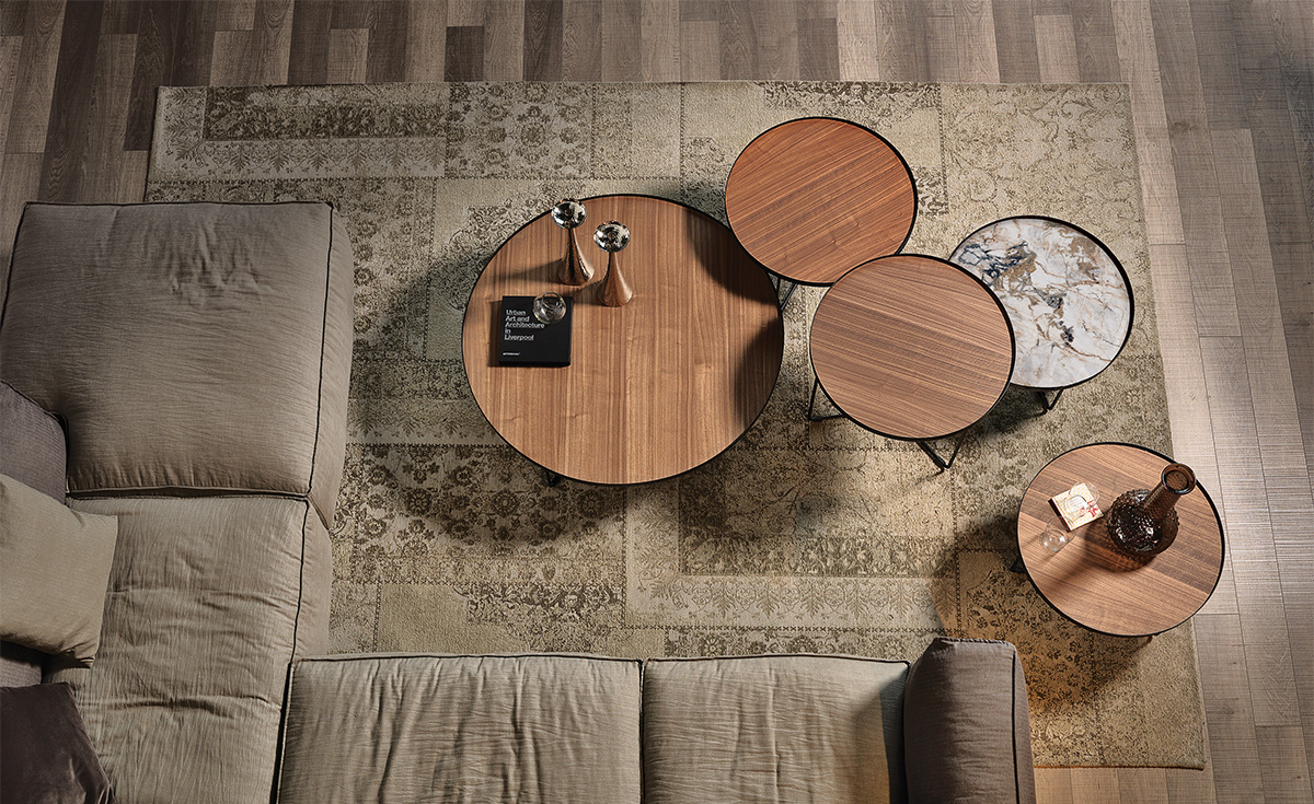 The Billy family of modern coffee tables allows you to create the composition that best suits your contemporary living room and your personal taste. The configuration is customizable by choosing between the Billy version, with a mirrored glass table top, Billy Keramik with a ceramic top and Billy Wood, a precious wooden coffee table. Each variant is available in different heights and sizes, the combination of which creates a curious game of layers.