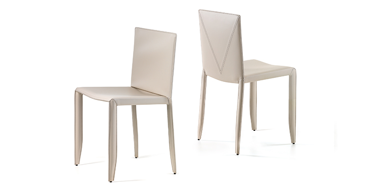 Ultralight chair with steel frame covered in leather as per sample card. Standard stitching.