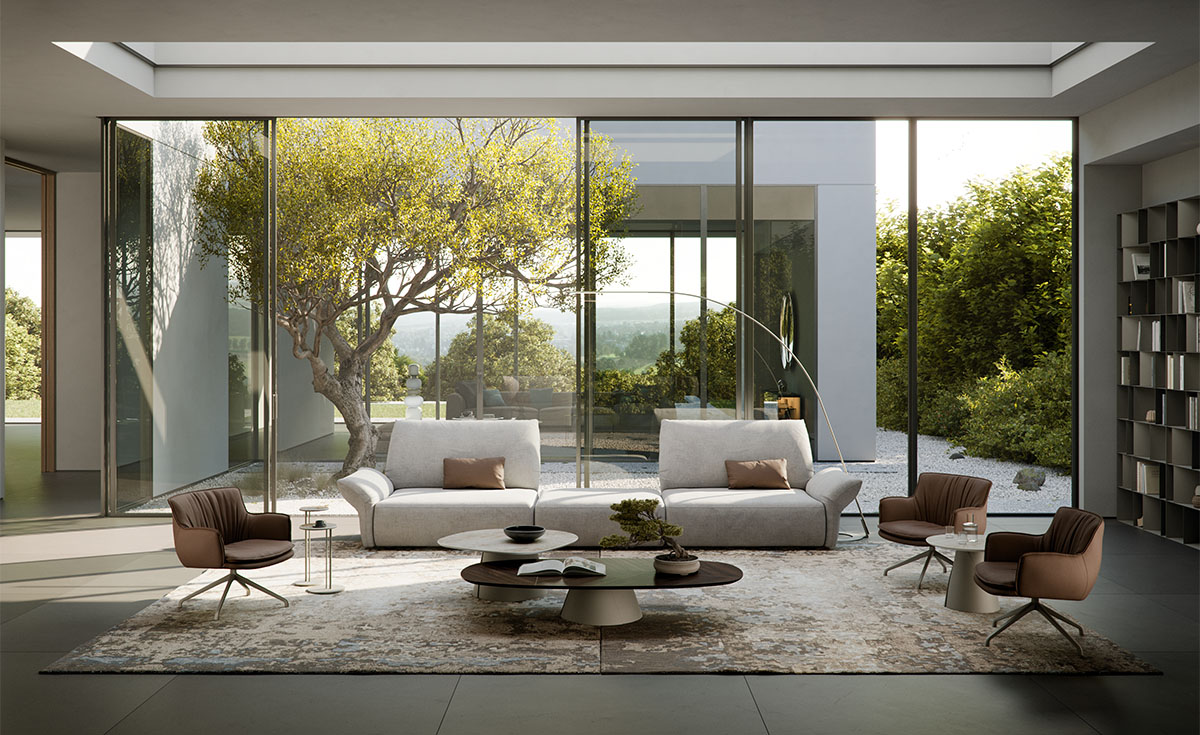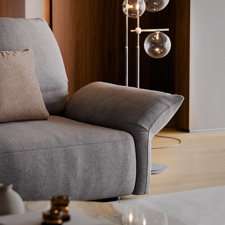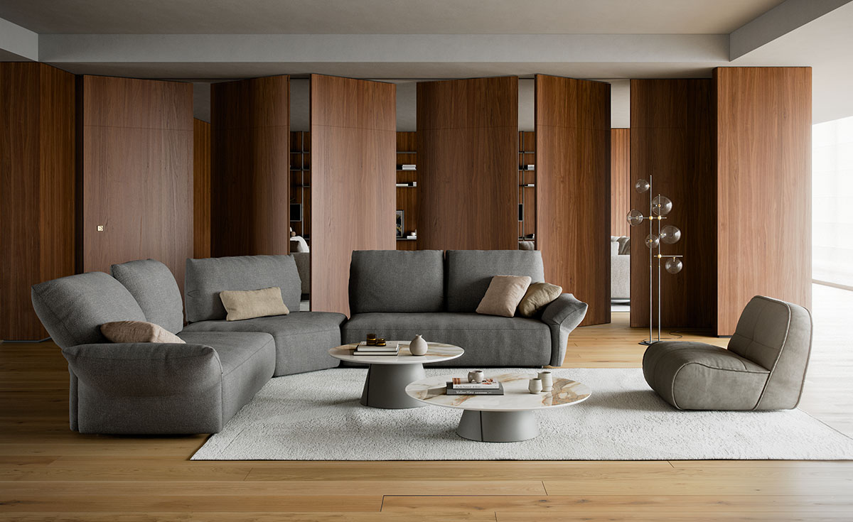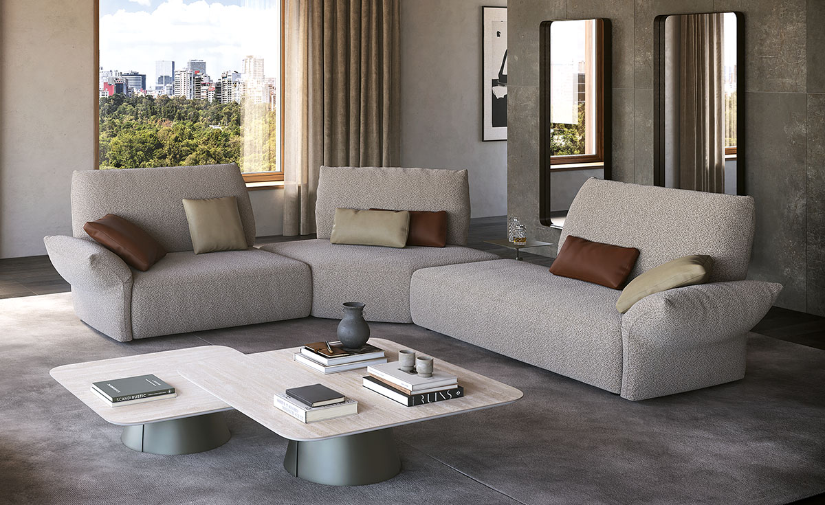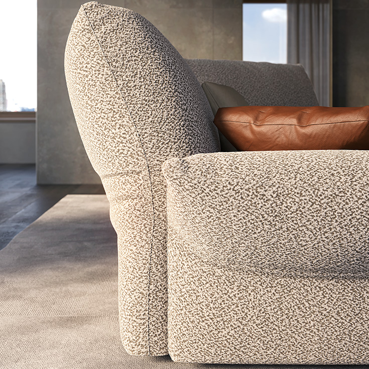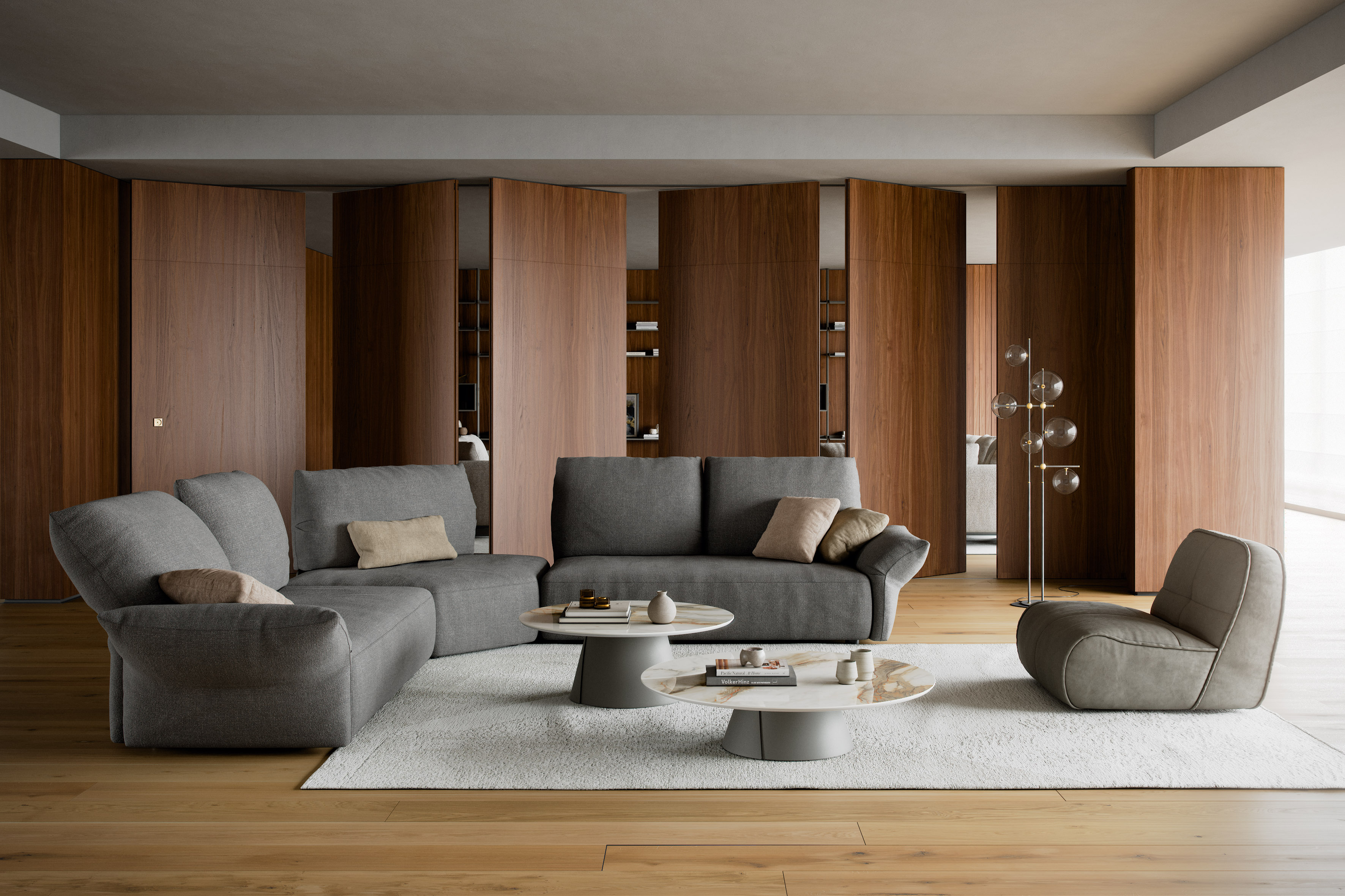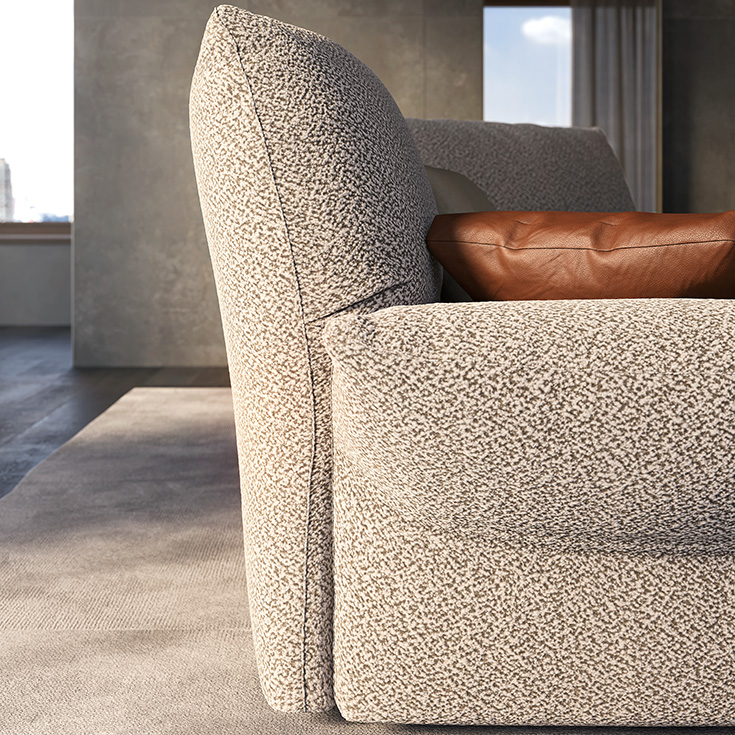 Sinatra is a modern modular sofa with a transversal personality, that can be transformed into a relaxing island or a corner dedicated to reading and thinking. The monolithic proportions make it a comfortable sofa with a dramatic and charismatic touch, perfect for your modern living room. The low, deep seat for maximum comfort creates a relaxed and informal atmosphere. Sinatra also features a practical mechanism that responds to the needs of all: the reclining backrest allows a slight inclination, and its height also offers greater support for the posture. Thanks to the modularity of this sectional sofa, you can create cosy linear and corner configurations with the peninsula. Combine it with delightful side tables and freestanding elements such as chaise longues, footrests and seating footstools to create a homely, made-to-measure space.
