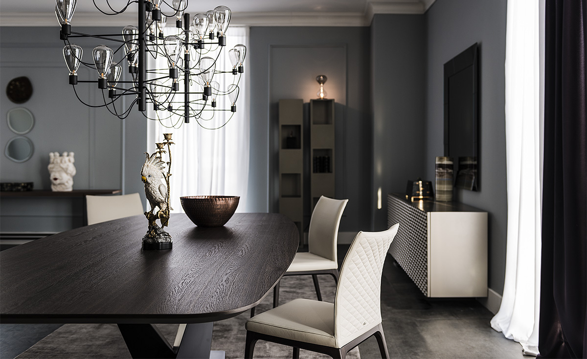 The Stratos collection of design tables by Paolo Cattelan and Studio Kronos offers unique furnishing solutions for a modern living room. The contemporary design of the base, together with the customizable table top, give life to many extraordinary design tables: Stratos Wood, Stratos Keramik, Stratos Keramik Premium and Stratos Crystalart. Exclusive finishes honor the best manufacturing Italian materials with a wide offer of table tops, including exquisite wood essences, a refined glass top with decorative artistic print in different colors, and numerous exclusive ceramic nuances.