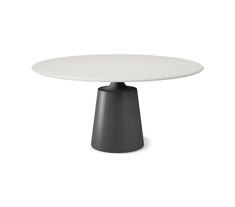 One of the most popular models among Cattelan Italia's round dining tables is the Yoda family, consisting of several variants from which to choose to personalise your design dining room. The base consists of a central truncated cone, the robust appearance is lightened by the metallic finish and by the connection with the narrow, recessed top, as if to resemble a long, elegant neck supporting the table top.