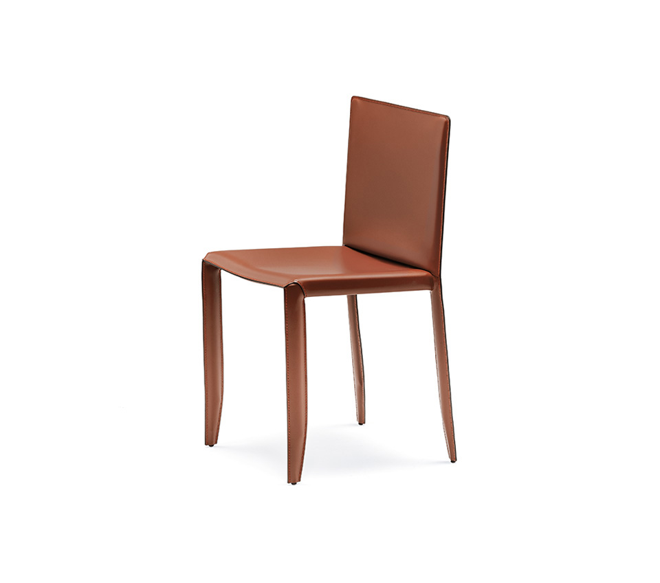 Ultralight chair with steel frame covered in leather as per sample card. Standard stitchings.