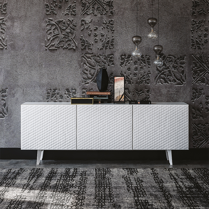 Thanks to a quilted upholstery in soft leather or synthetic leather, the sideboard Absolut makes the modern living room warm and welcoming. This design cabinet, equipped with 2 or 3 doors, is manufactured with the finest quality materials, such as the soft frontal upholstery. Choosing among different coverings and precious finishes, it is possible to customize this modern sideboard in order to adapt it to your own design living area, granting a unique style.