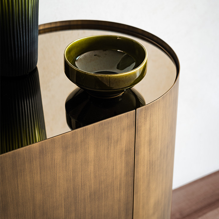 As an alternative, the top is available in bronze mirrored glass for a more understated, yet equally intriguing effect.