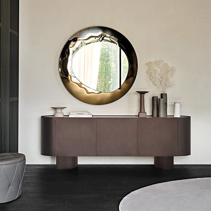 Giorgio Cattelan has chosen a fine Marmi ceramic finish to embellish the top of the Savoy model, the design sideboard dreamt up by his imagination. With an essential and compact shape, Savoy makes an impression precisely with this inimitable premium detail.
