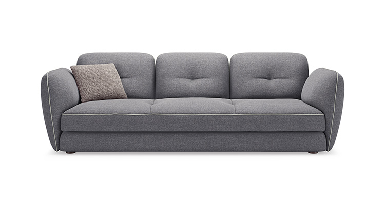 Sofa or modular sofa with wooden frame, polyurethane padding and thermoplastic feet. Cover in leather or fabric as per sample card with gros grain piping available in 5 colors. Removable cover only in the fabric version.