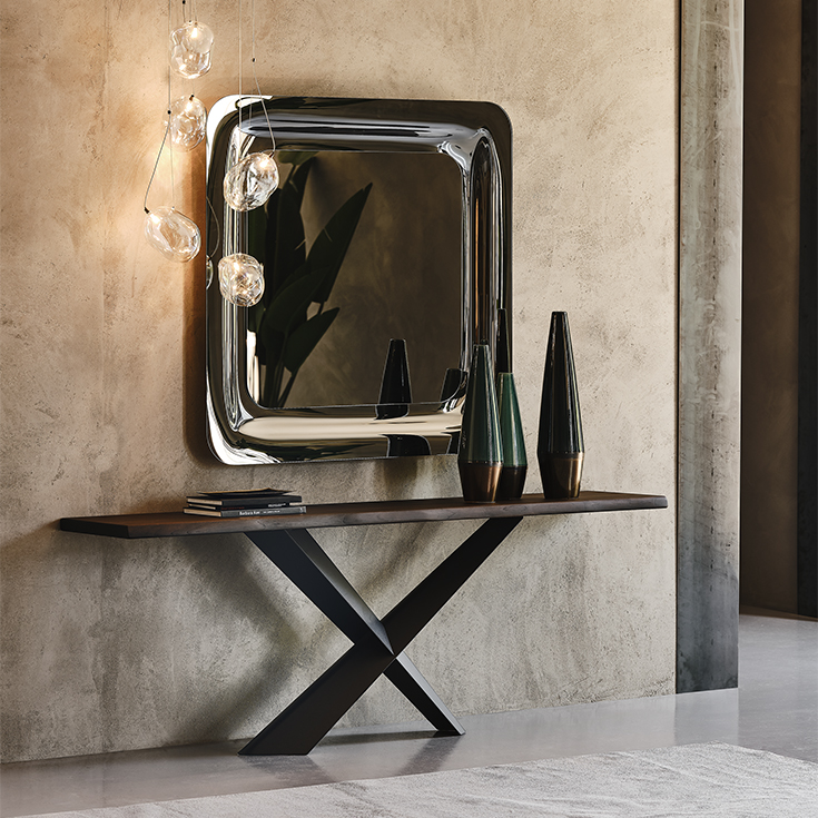 The first is enhanced by the elegant Brushed Bronze or Brushed Grey frame. While the second is an extendable console table that reaches 2 metres in length thanks to an ingenious mechanism of extensions and supports, turning into a magnificent table ready to welcome guests.