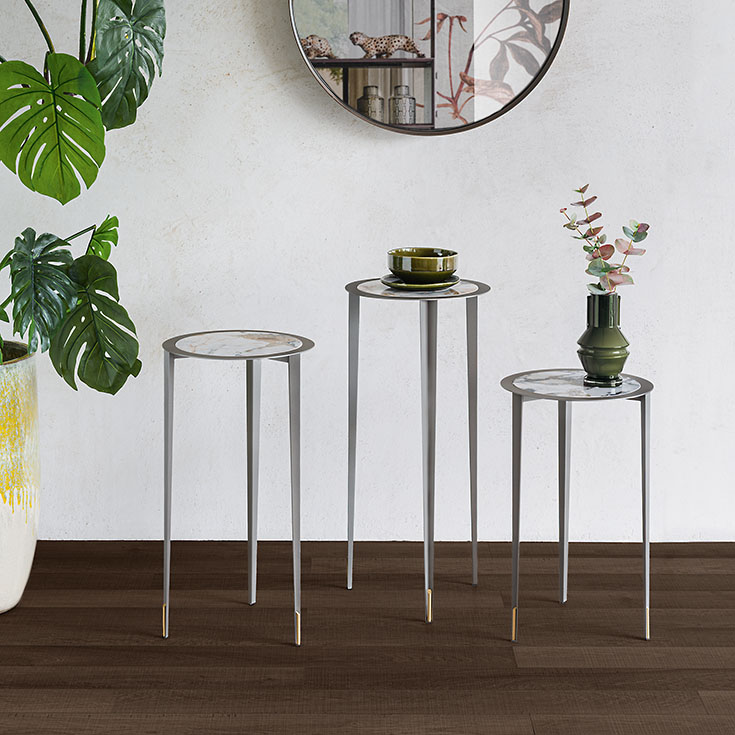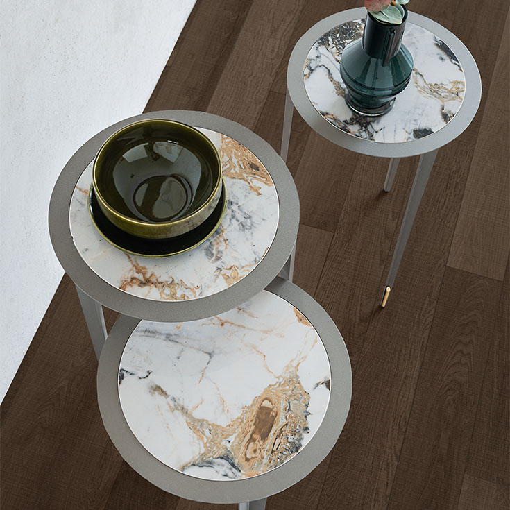 Nothing is left to chance in a Cattelan Italia living room, not even the sofa side tables, which become decorative and functional design objects in dialogue with the entire environment.