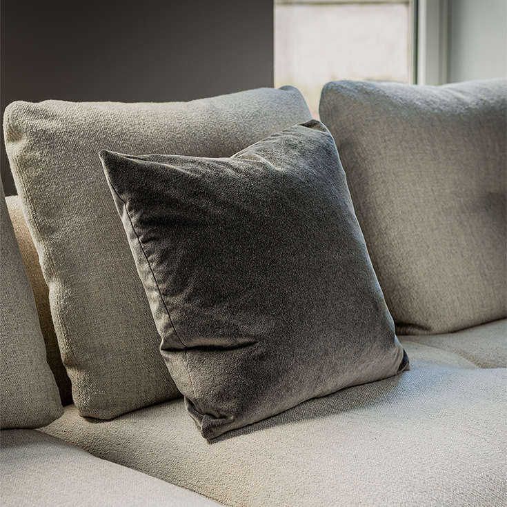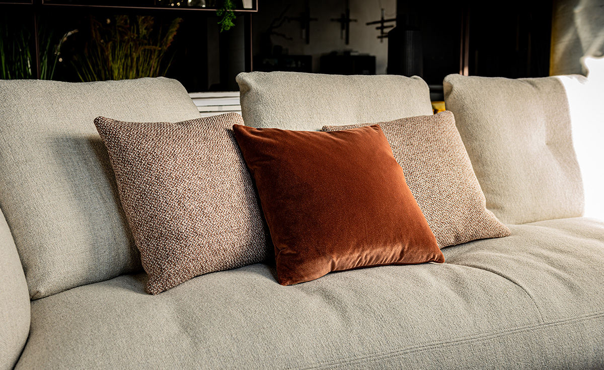 The soft and voluminous Bliss furniture cushion brings a touch of elegance to your sofa and gently embraces you in its generous feather-blend filling. Created with a sartorial flair in every detail, this modern living room cushion casually dresses up our collection of fabrics and leathers. Bliss is available in two versions: you can choose either the rectangular cushion, designed to offer comfortable lumbar support, or the square cushion, which can be arranged as desired to allow you various positions of pure relaxation.