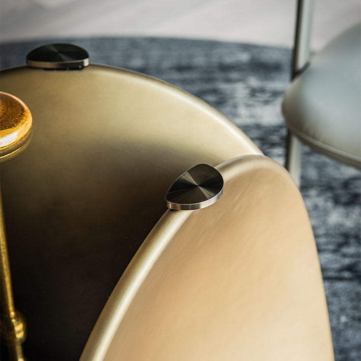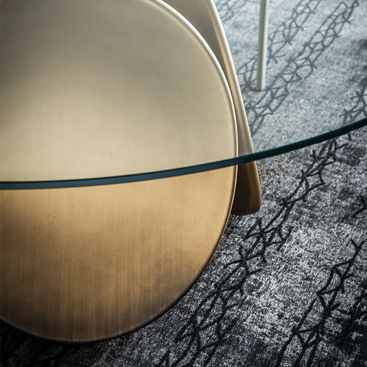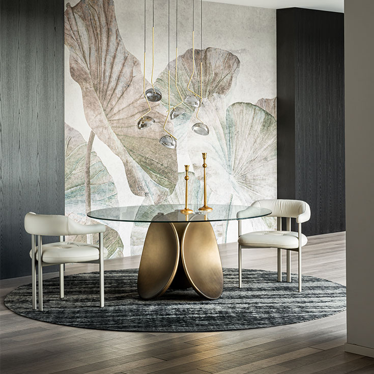 El diseño de mesa escultural Maxim surge de la relación indivisible entre su forma, constituida por tres pétalos y el material con el cual está realizada. Justamente como una escultura que surge de la materia entre las manos del maestro, del mismo modo, observando esta mesa redonda de diseño se puede percibir el esfuerzo y el tiempo empleados por el hombre para plasmarla.
