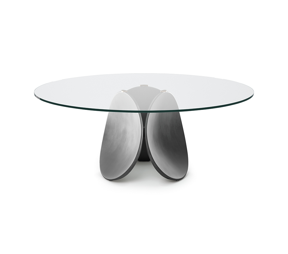 El diseño de mesa escultural Maxim surge de la relación indivisible entre su forma, constituida por tres pétalos y el material con el cual está realizada. Justamente como una escultura que surge de la materia entre las manos del maestro, del mismo modo, observando esta mesa redonda de diseño se puede percibir el esfuerzo y el tiempo empleados por el hombre para plasmarla.