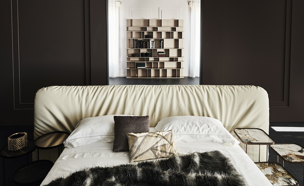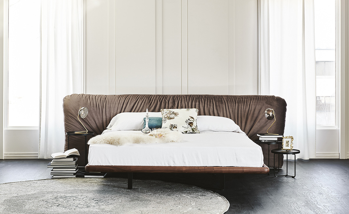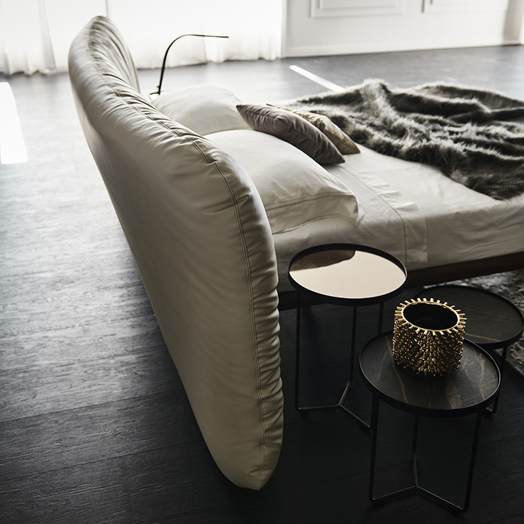 Marlon, diseñada por Archirivolto, es una cama de diseño ¡a la cual es imposible resistirse! La maxi cabecera revestida es una auténtica invitación al descanso, allí donde el plisado all over permite destacar aún más el revestimiento mullido y la excelente calidad de las materias primas. De un largo y minucioso estudio de los materiales, resultó una carpeta de tejidos y pieles que son el símbolo de una manufactura orgullosamente italiana. Las mesas de noche quedan fundidas en un abrazo, mientras que la estructura de madera refinada parece flotar con gran elegancia.La línea de camas matrimoniales modernas Cattelan Italia está pensada para quienes desean un mobiliario de diseño sin descuidar el atractivo para su habitación matrimonial moderna.