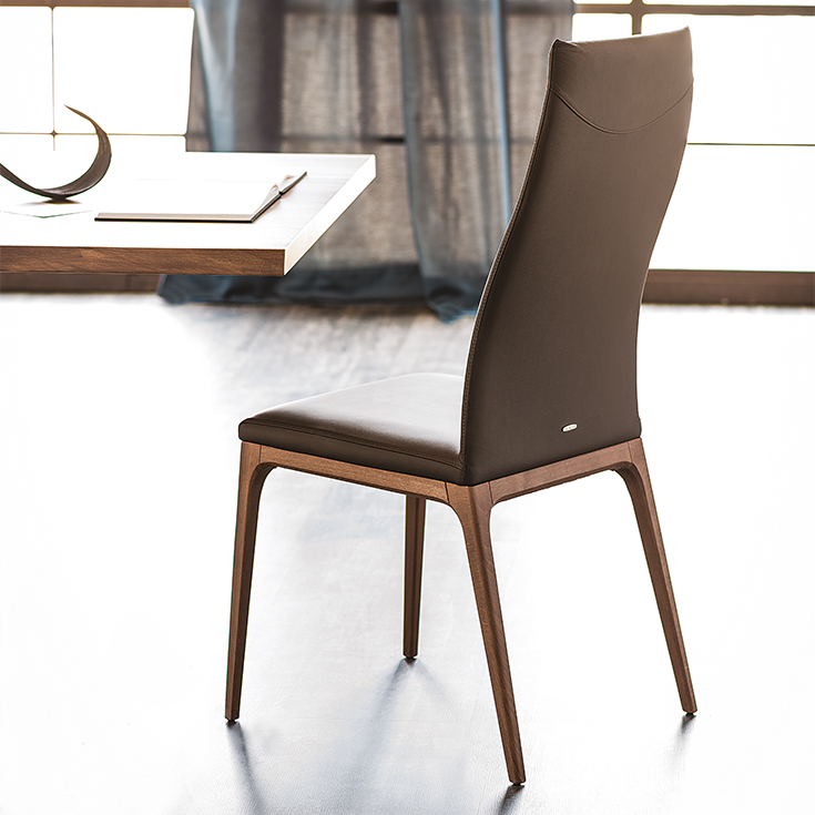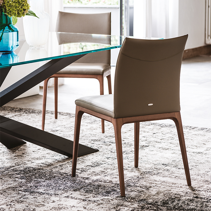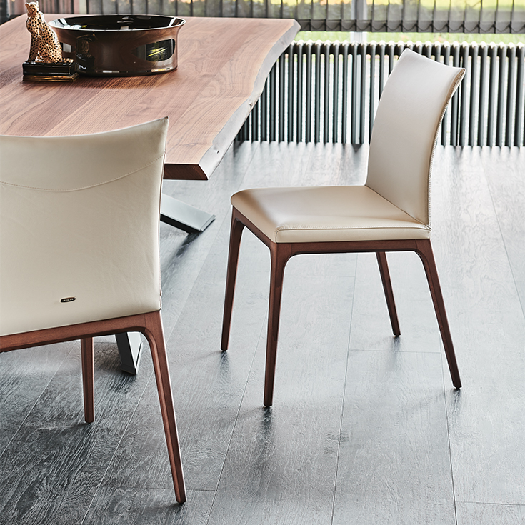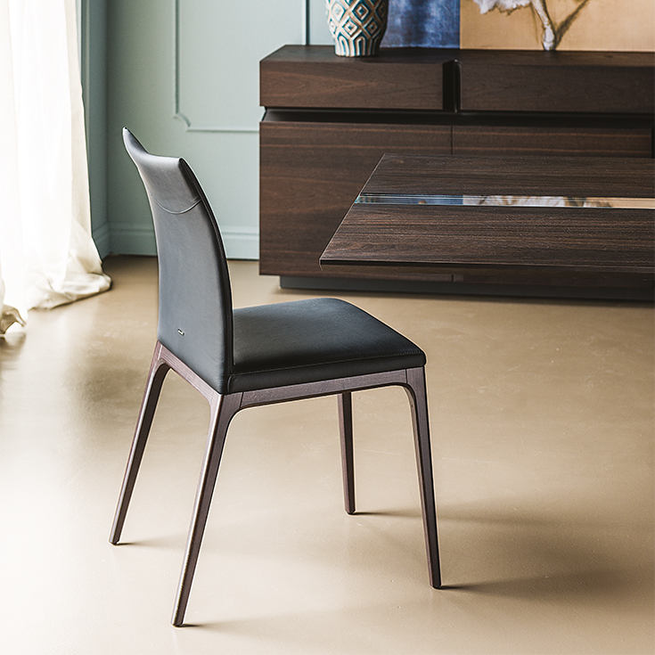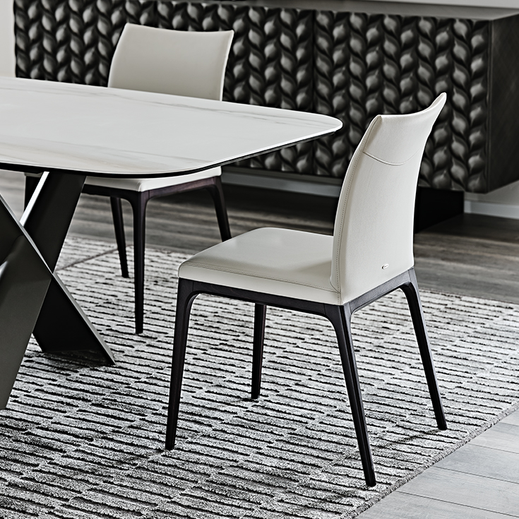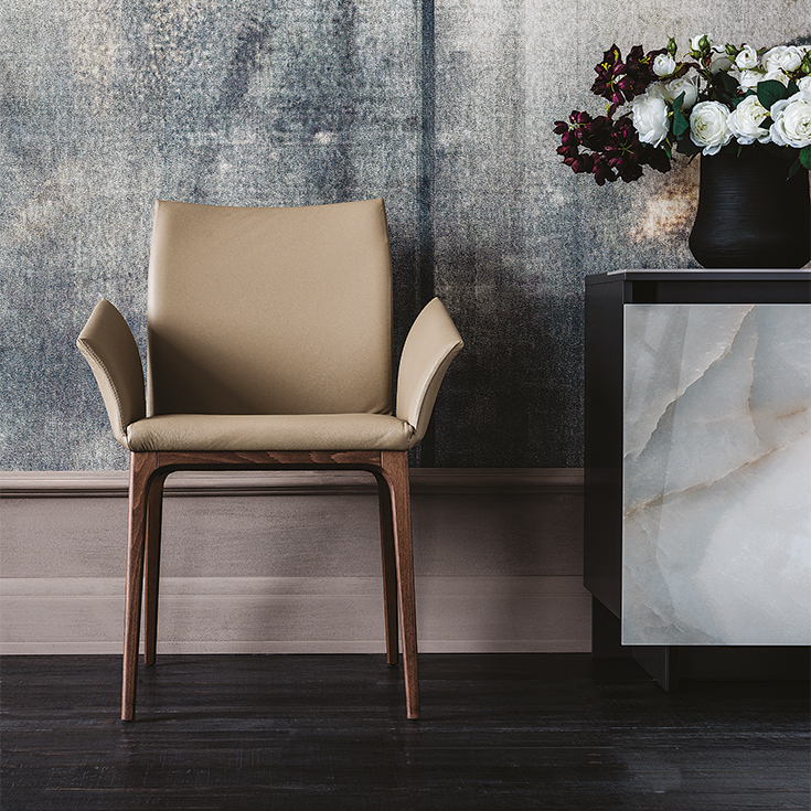 El confort más auténtico de una silla moderna de diseño se embellece con un aura que trasciende el tiempo.Arcadia tiene un espíritu refinado, su elegante sobriedad - junto con bellos trabajos artesanales - la convierten en un intérprete que atraviesa la sala de estar, tanto en proyectos residenciales como en contratos para trabajos de diseño de interiores.La estructura de madera maciza de calidad y la refinada gama de revestimientos permiten ofrecer variadas combinaciones de estilos, que se expresan a través de todas las versiones, incluso en aquellas con respaldo alto, taburete y Couture. Esta última se materializa en la silla de piel con una glamurosa colchadura romboidal que embellece toda la parte trasera del respaldo.