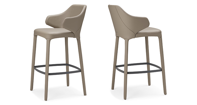 Taburete con estructura en acero tapizada y completamente revestida en tejido, ecopiel o piel según muestrario. El tapizado no es desenfundable.