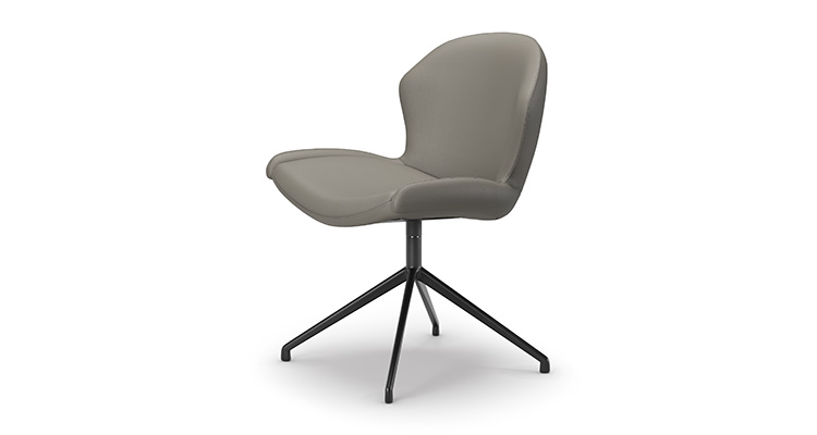 Silla giratoria con base con 4 radios en aluminio barnizado gofrado titanio (GFM11), bronce (GFM18), graphite (GFM69), pearl (GFM70) o negro (GFM73). Tapizada en tejido, micro nubuck, piel o ecopiel según muestrario. El tapizado no es desenfundable.