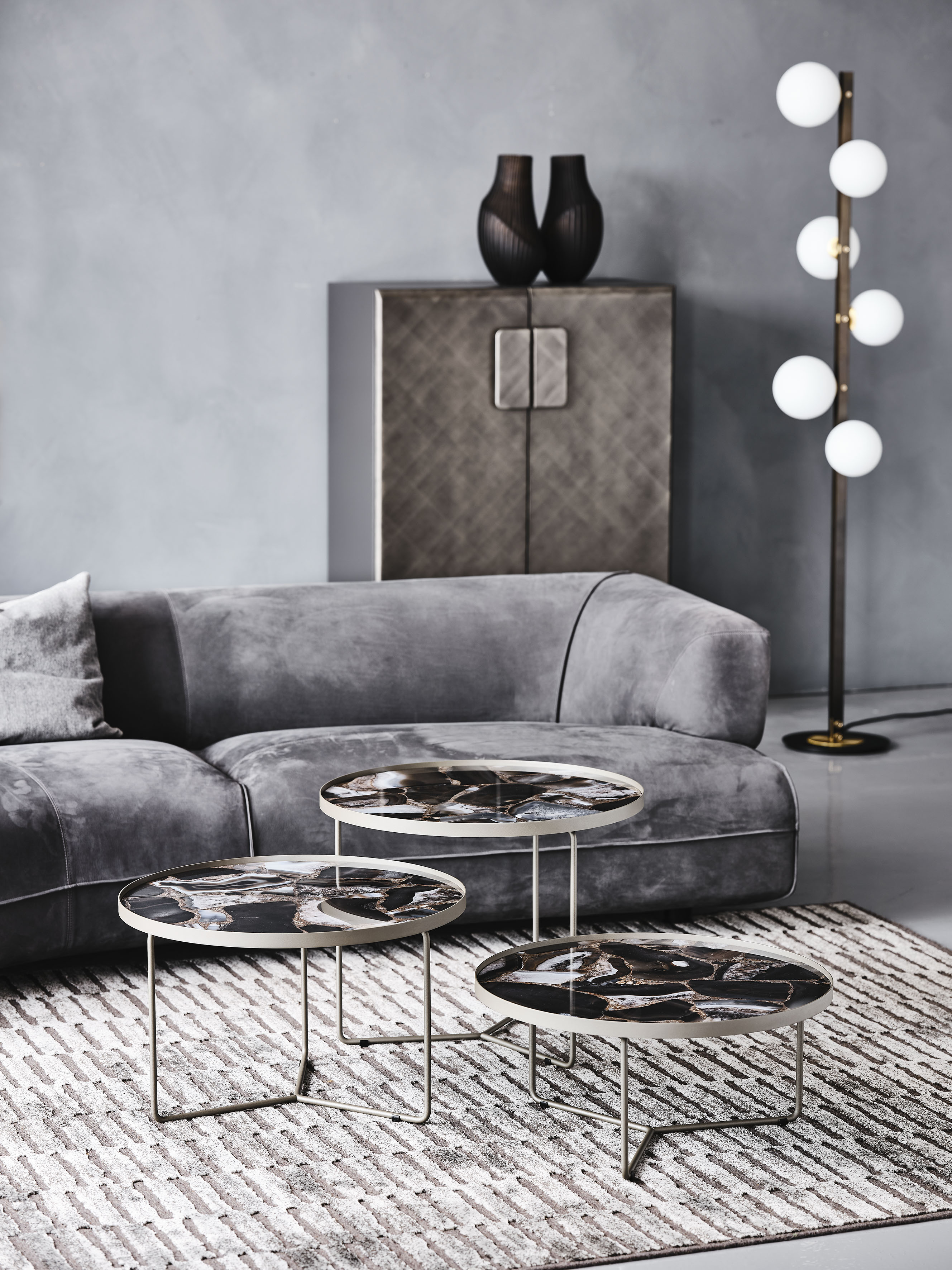 La familia de mesitas para sala de estar de diseño Billy permite crear la combinación que mejor se adapte a su sala de estar moderna y, a la vez, a su gusto personal. Se pueden personalizar las combinaciones de mesitas de diseño contemporáneo, escogiendo entre la versión Billy, con el sobre de la mesita de vidrio espejado, Billy Keramik con sobre de cerámica y Billy Wood, una preciada mesita de madera. Cada variantes se encuentra disponibles en diferentes alturas y dimensiones que, al combinarse, crean un atractivo juego de niveles.