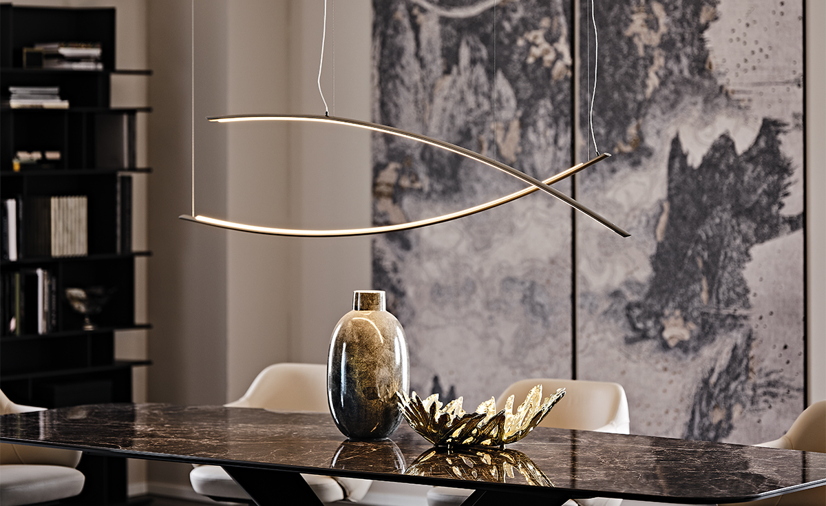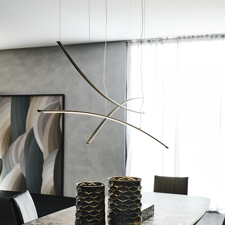 Elle est réalisée en deux versions : Katana et Katana Magnum. La deuxième est aussi longiligne mais plus grande, tel que son nom le suggère. Les deux variantes sont divisées dans les versions UP et DOWN, selon la direction vers laquelle l’arc est orienté. Ce qui rend cette lampe moderne très personnalisable est la possibilité de créer des compositions en combinant toutes les versions disponibles dans un seul luminaire incisif et ultra-contemporain.
