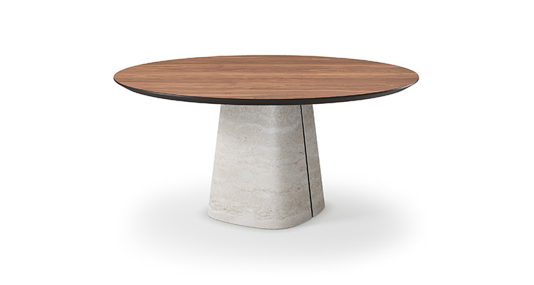 Le modèle Rado Keramik Round peut être revêtu de manière uniforme, avec la base et le plateau en céramique. En alternative, il est possible de choisir les modèles de tables rondes en bois avec la base en céramique et le plateau en essences de première qualité : les modèles Rado Wood Round et Rado Ker-Wood Round, ce dernier avec un détail inséré en céramique.