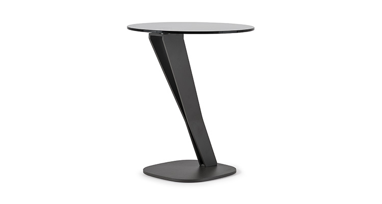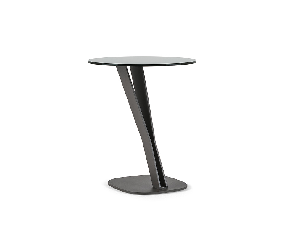 Table coté/canapé avec base en acier gaufré graphite (GFM69). Plateau en verre clair ou fumé.