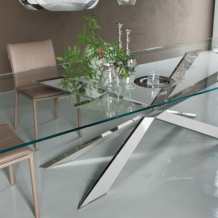 Le soin apporté au détail et l’excellence des matériaux font du model Spyder une table moderne capable de compléter le mobilier du salon avec style. La simple forme X de la base en acier, avec des finissions brillantes qui reflètent la lumière, valorise le matériel précieux du plateau. La table Spyder est réalisée dans différentes variantes en utilisant plusieurs matériaux, tailles, formes.