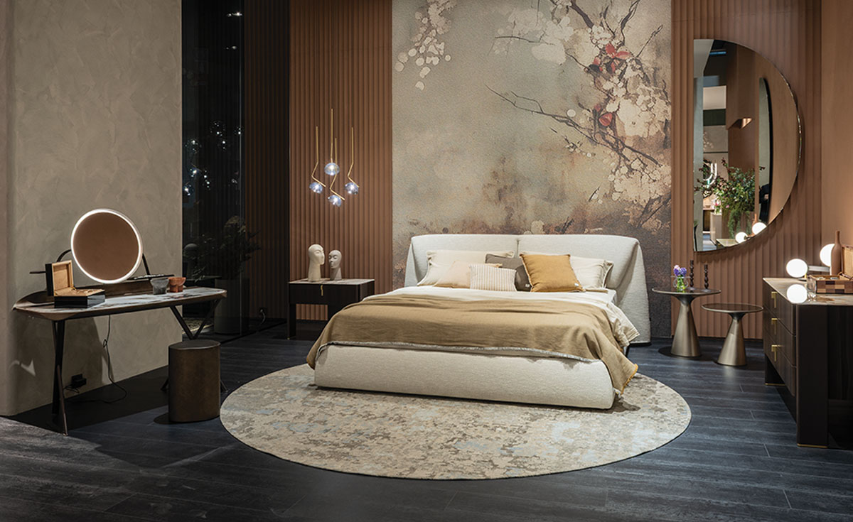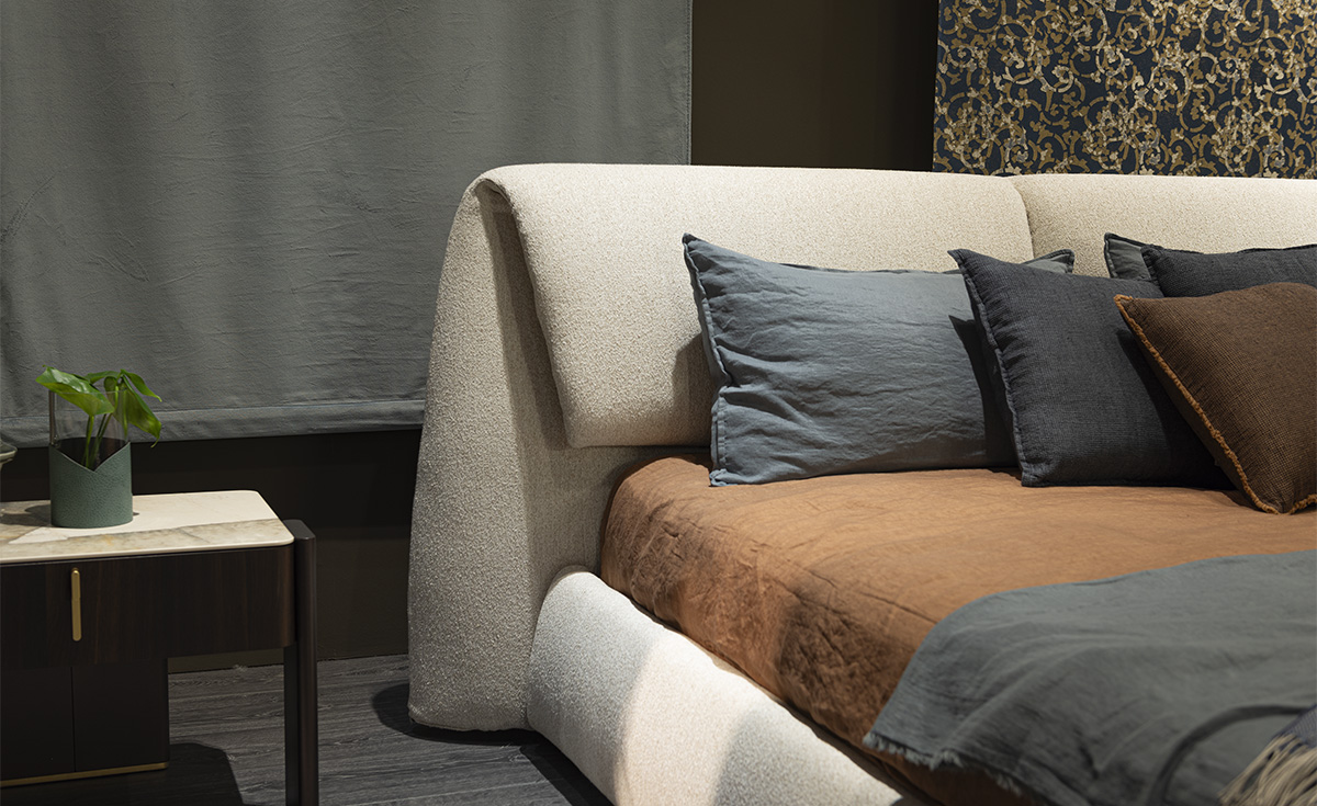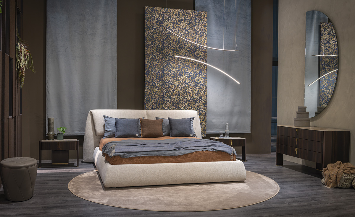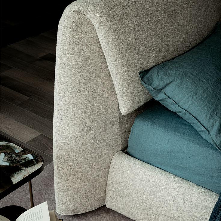 La large tête rembourrée, repliée sur elle-même comme une douce vague et légèrement saillante par rapport au tour de lit, offre davantage de la mollesse et du sens d’accueil. Simon est la pure poésie appliquée à la conception, un mélange de volumes doux et matériaux souples de première qualité pour meubler une chambre matrimoniale moderne avec du goût et de l’élégance.
