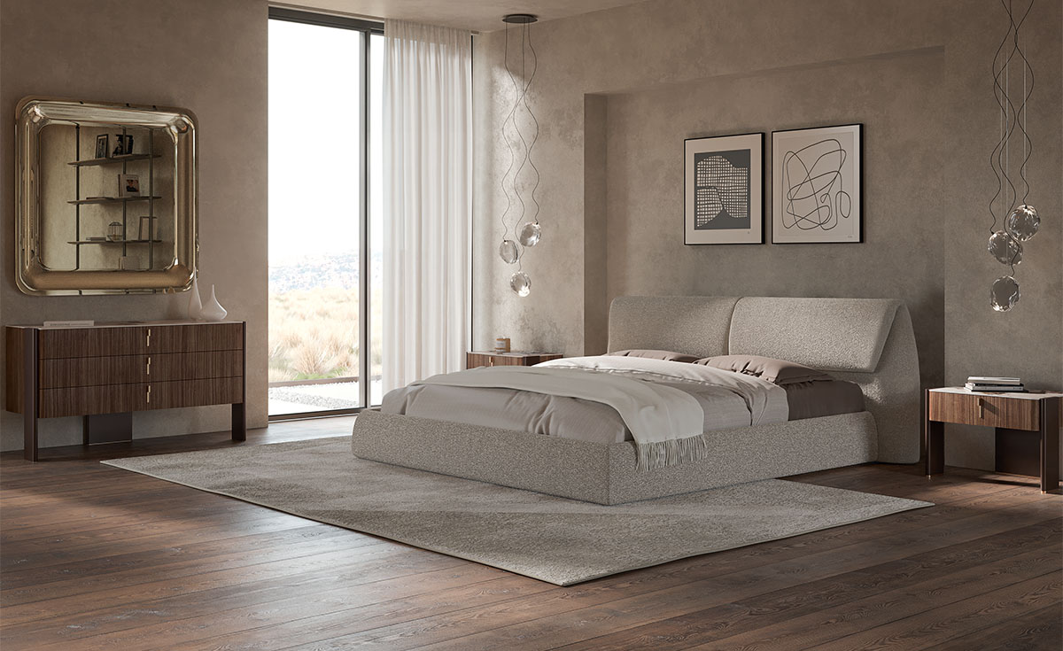Simon, un lit deux places de design majestueux, est un projet équilibré, dont les formes sont conçues minutieusement pour créer l’uniformité et la continuité entre la tête et le tour de lit.