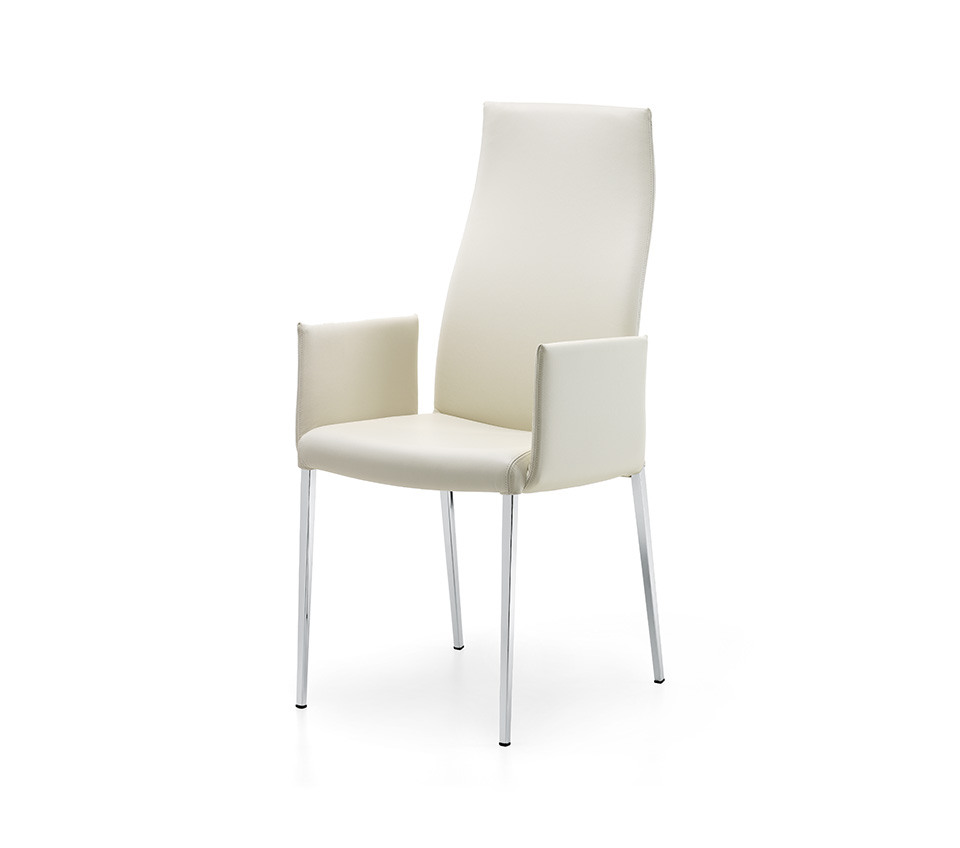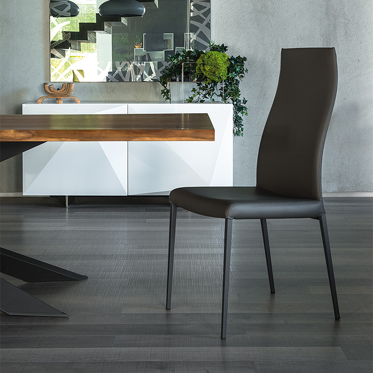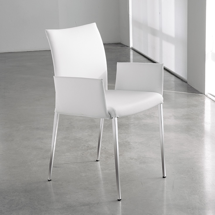 Le dossier est proposé aussi dans une version haute pour soutenir davantage la position et dans une version avec accoudoirs qui enrichit cette chaise moderne de table en la rendant un vrai objet de design contemporain.