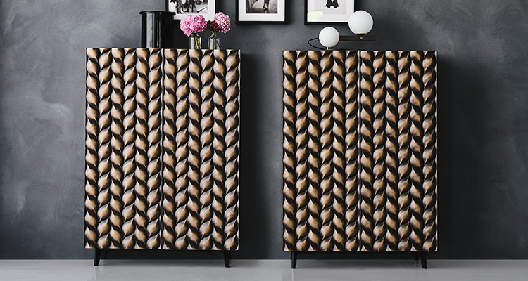 Spiga est une crédence de fort impact tridimensionnel. L’exécution des portes exalte la finition laquée dans des couleurs métalliques et elle crée un modèle de lumières et d’ombres incisives. La surface irrégulière mais soyeuse satisfait le toucher lorsque la main passe sur la porte. Cette crédence moderne est sophistiquée grâce à la sage production italienne, aux détails de première qualité et aux finitions exclusives. Le caractère sculptural de cette crédence élégante de design est conçu pour compléter les espaces living des maisons, des hôtels et des restaurants raffinés. Une partie du dossier de la crédence Spiga es réfléchissante.