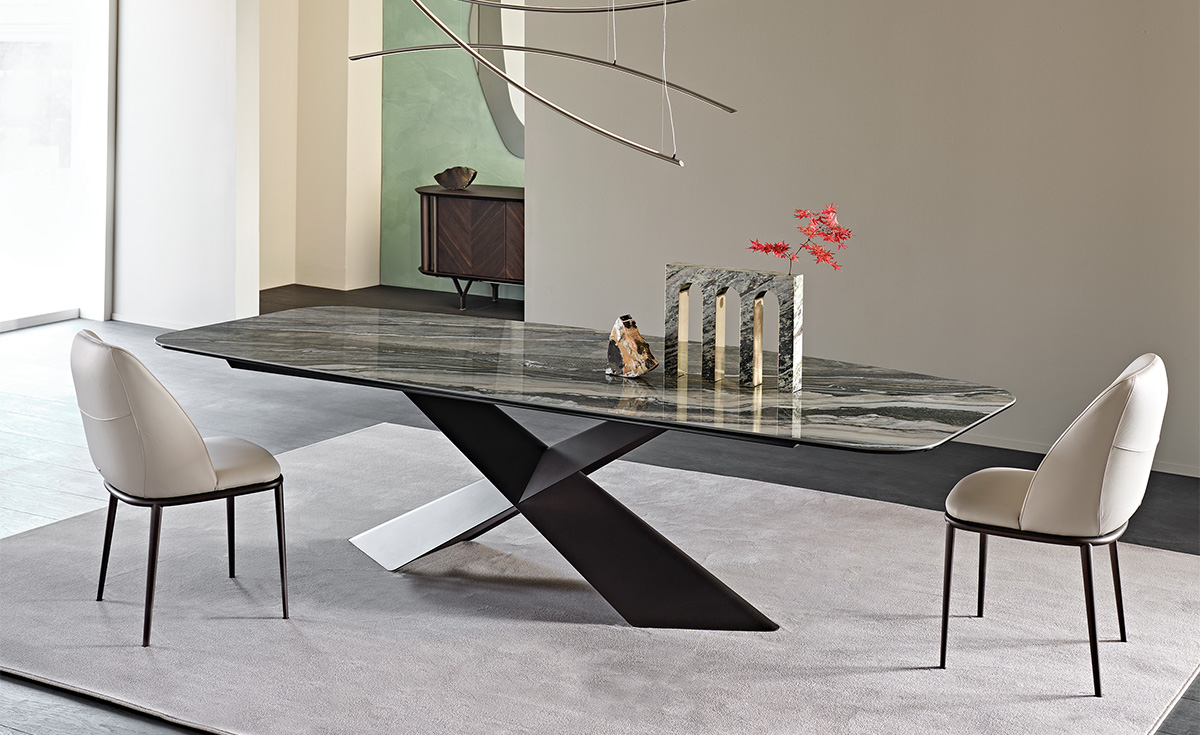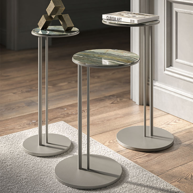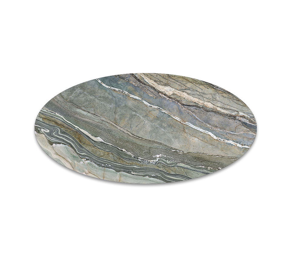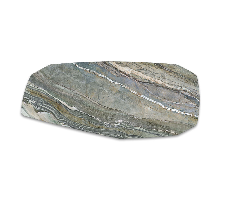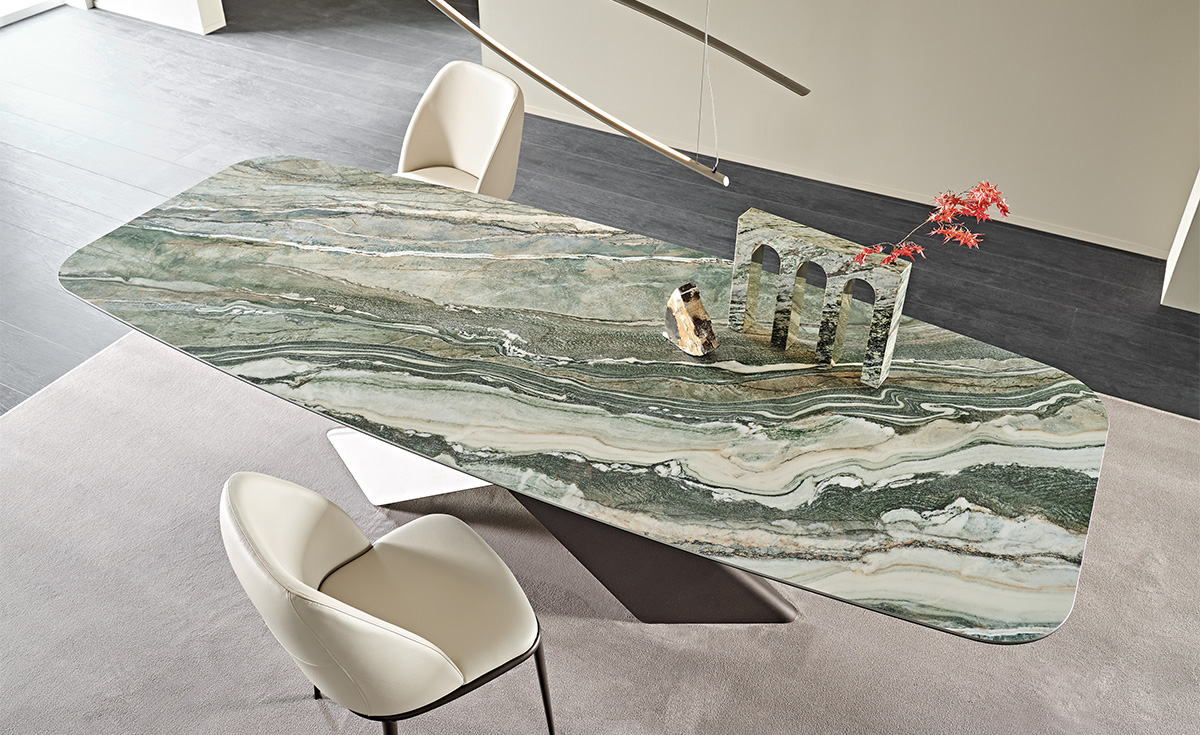 La ceramica Kaindy dona un tocco di colore all'arredo, con delicate sfumature che si accostano con armonia a materiali e tonalità più neutre. Questa ceramica verde presenta in realtà numerose striature iridate con variazioni fluide di verde, ma anche di blu e grigio e ricorda la vista satellitare di un territorio lagunare. La collezione di finiture Keramik abbraccia numerosi prodotti: dai tavoli in ceramica i quali sono senza dubbio i best seller del brand, alle credenze in ceramica realizzate in diverse dimensioni, ai piani dei tavolini in ceramica di design che possono creare composizioni dinamiche affiancando diversi materiali, fino alle pratiche consolle e porta TV in ceramica.