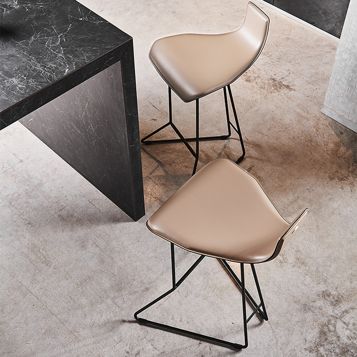 Il puro design è il focus dello sgabello moderno Pepe che racchiude in sé l'estro creativo di Paolo Cattelan e una lavorazione eccellente delle materie prime di qualità. Questo sgabello in cuoio di design ha una seduta in cuoio triangolare, così come la struttura della base in acciaio. Una lieve curvatura del sedile garantisce la comodità e dona uno stile unico. Con un tocco di elegante eccentricità, la forma di Pepe è al totale servizio della funzione, la comodità assoluta e la convivialità. Questo sgabello bar è particolarmente adatto a cucine con penisola di design o a progetti contract.