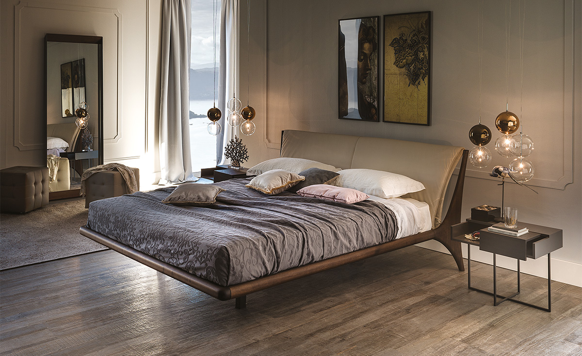 Il letto di design Nelson, disegnato da Andrea Lucatello, sembra fluttuare nell’aria e spiegare le vele come un antico veliero. Le geometrie pure e le forme leggere lo rendono un letto moderno capace di progettare lo spazio con un linguaggio di stile. Inconfondibile la struttura architetturale in legno che profuma di essenze pregiate e sorregge la maxi testiera disponibile in una vasta gamma di tessuti e in una ricca palette cromatica di morbide pelli. Il risultato è un letto matrimoniale di design raffinato, che combina alla perfezione eleganza estetica e qualità progettuale.La linea di letti matrimoniali moderni Cattelan Italia è pensata per coloro che desiderano arredi di design e fascino per la propria camera matrimoniale moderna.