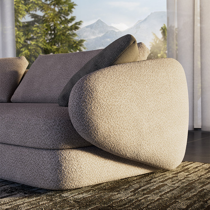 Curve sinuose, comfort eccezionale e un’estetica che cattura lo sguardo: Craig è un divano di design che arreda il tuo soggiorno moderno rendendolo unico. È un divano contemporaneo conforme al gusto del panorama attuale, destinato tuttavia a distinguersi con stile. Lo schienale, ispirato alle forme armoniose della natura, avvolge i cuscini morbidi e completamente sfoderabili; l’aspetto singolare a tutto tondo permette di creare nel tuo open space un’atmosfera serena e distesa. Il bracciolo, assoluto protagonista della composizione, sembra chiuderti in un caldo abbraccio, facendoti sentire in un luogo intimo e raccolto. Craig è anche un divano componibile che, modulare e versatile, si adatta al tuo spazio: scegli le configurazioni lineari per conversazioni vis-à-vis, crea una accogliente configurazione ad angolo o aggiungi una chaise longue nella versione tonda e squadrata.