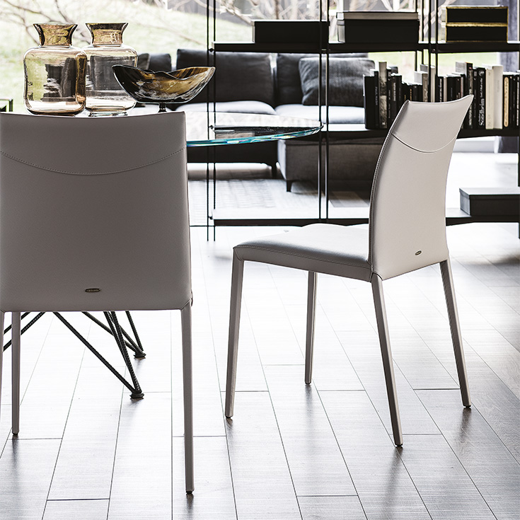 Un'ulteriore personalizzazione è disponibile per la sedia in pelle Norma Couture o Norma ML Couture, ovvero una trapuntatura glam romboidale che impreziosisce tutto il retro schienale.