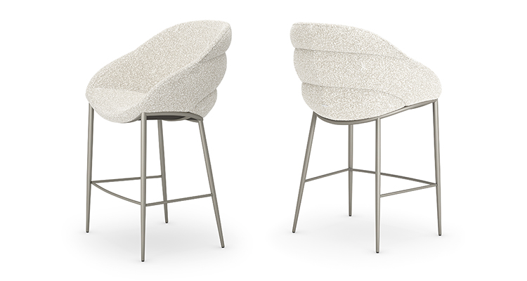 Горизонтальные отстрочки на задней части спинки создают 3 мягких выступа, которые плавно «перетекают» в подлокотники. Глубина структуры и соединение ножек в нижней части спинки дополнительно подчеркивают изысканность обволакивающих изгибов.