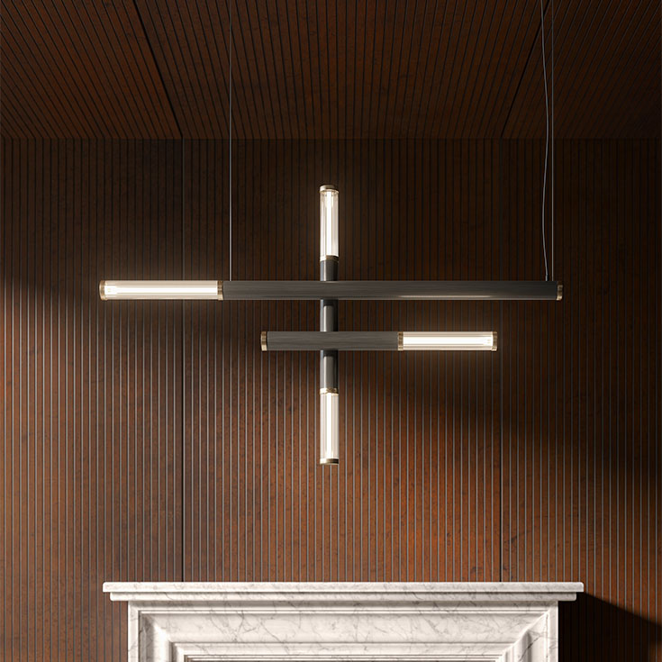 Светильник Regata состоит из трех стержней, которые пересекаются в воздухе с математической точностью, подобно мачте, поддерживающей паруса. Основная часть каждого стержня выполнена из сатинированного металла, а концы — из прозрачного рифленого стекла. Внутри последних размещены яркие светодиоды.