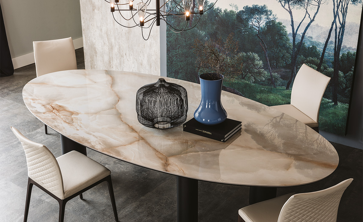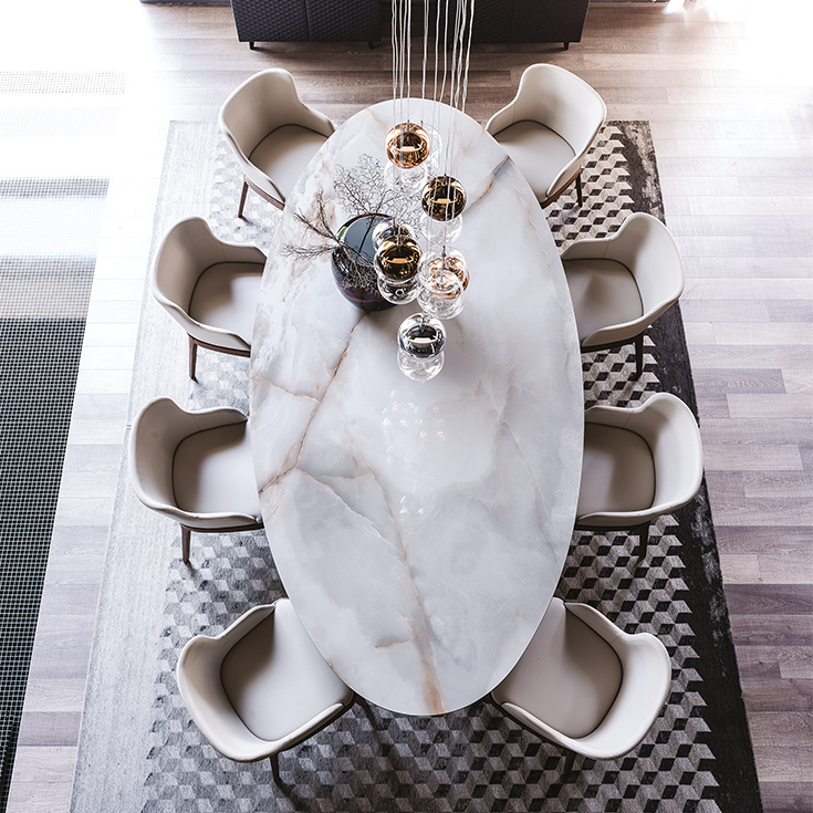 По замыслу Паоло Каттелана, коллекция современных столов Roll Keramik придает форму концепции применимости, благодаря бесчисленным конфигурациям основания: 3, 4 или 5 цилиндрических ножек, доступных в разных диаметрах и элегантной отделке. Гармоничная игра толщины и идеально дозированная асимметрия придают очарование и стабильность этому ценному дизайнерскому столу. Столешница выполнена из керамического Marmi и доступна в различных изысканных тонах, а также различных формах и размерах. Этот стол позволяет создать подетально свою собственную очаровательную современную гостиную.