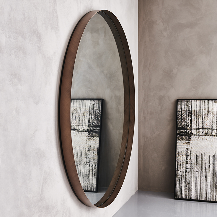 Настенное зеркало. Рама из стали окрашенной в гофрированный титан (GFM11), черный (GFM73), брашированную бронзу или брашированный серы.