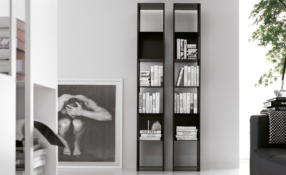 Библиотека изстали, окрашенной в матовый черный (OP17) красный (OP89), титан (GFM11) или pearl (GFM70). Максимальная грузоподъемность полок: 7 кг каждая.