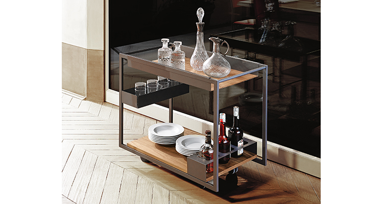 Mojito Wood - это современная барная тележка строгого и линейного дизайна. Стальная конструкция простой и элегантной формы поддерживает два деревянных подноса. Барная тележка оснащена отверстиями для бутылок и практичным открытым отделением половинной высоты, которые сочетаются с металлической структурой и окрашены графитовой краской. Практичная и компактная, эта барная тележка является элегантным и, в то же время, современным аксессуаром для принятия гостей в дизайнерской гостиной.